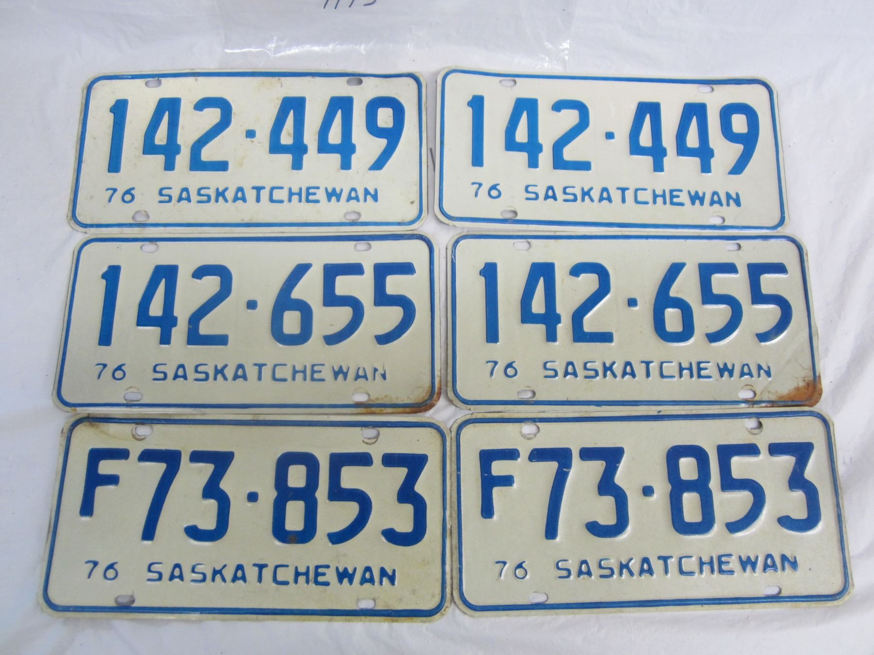 3 Pair of Saskatchewan 1976 License Plates
