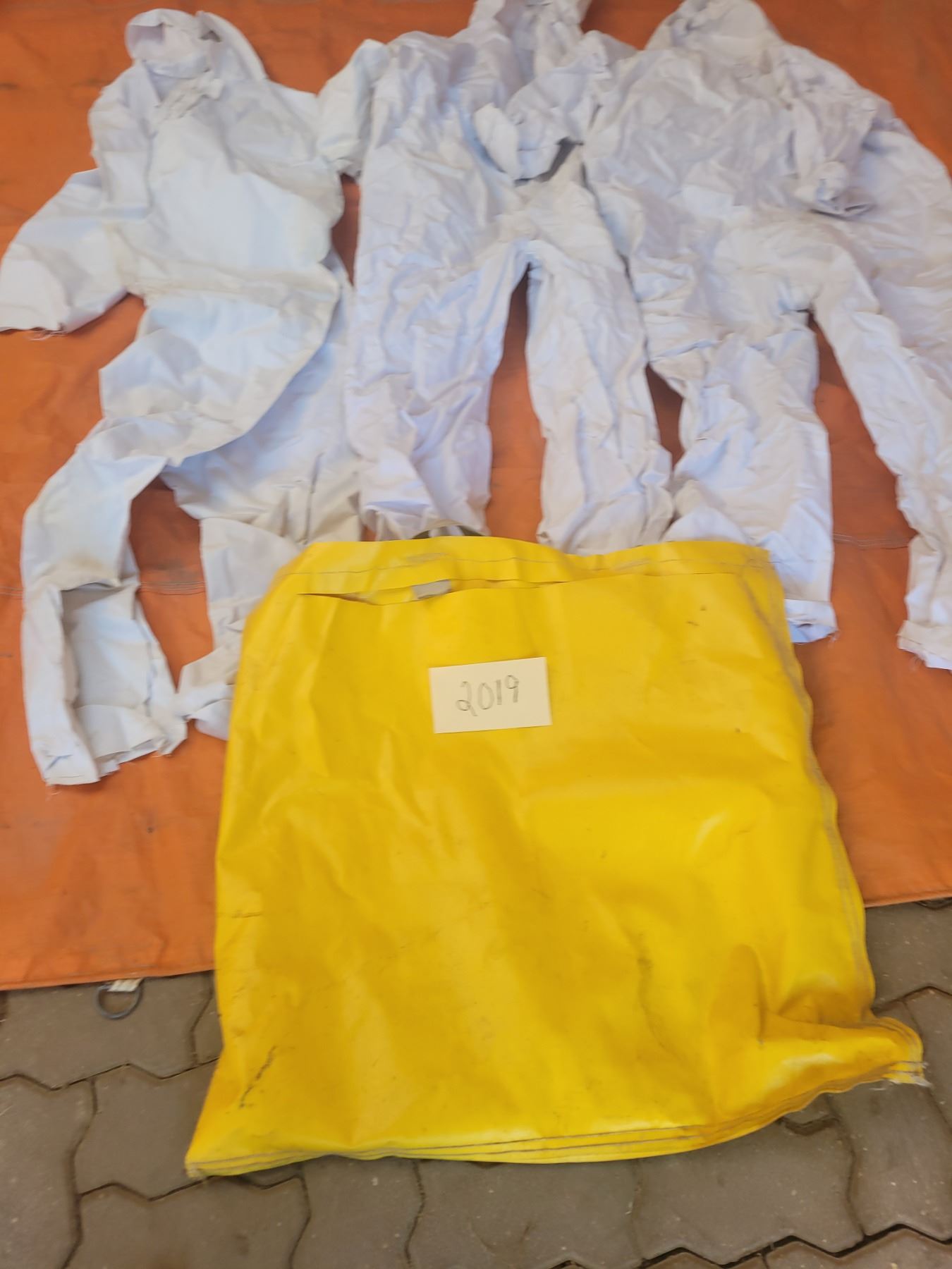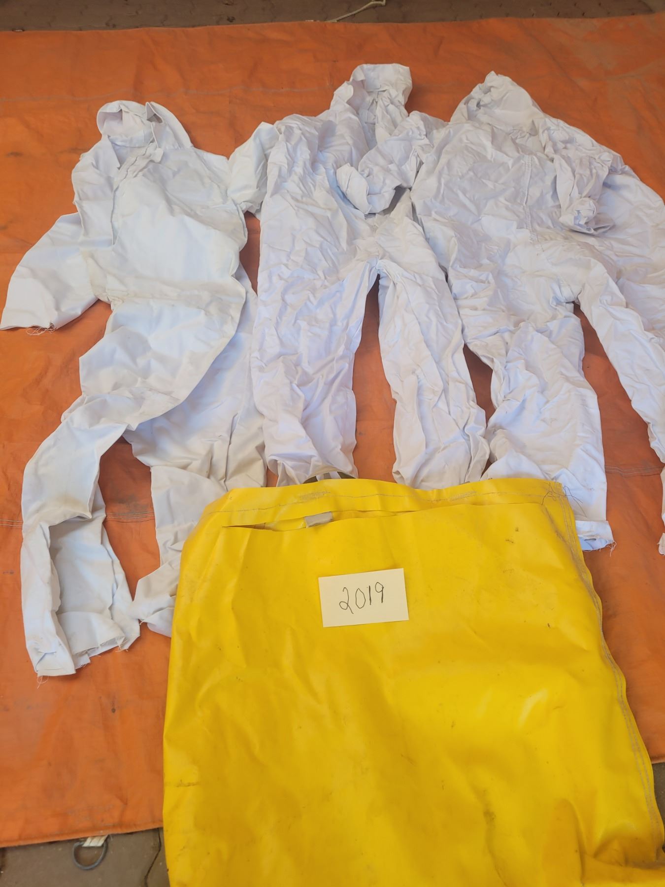 3 Pair of white coveralls, made to put over outer garments for snow goose hunting or in snow - sz L w/ hood