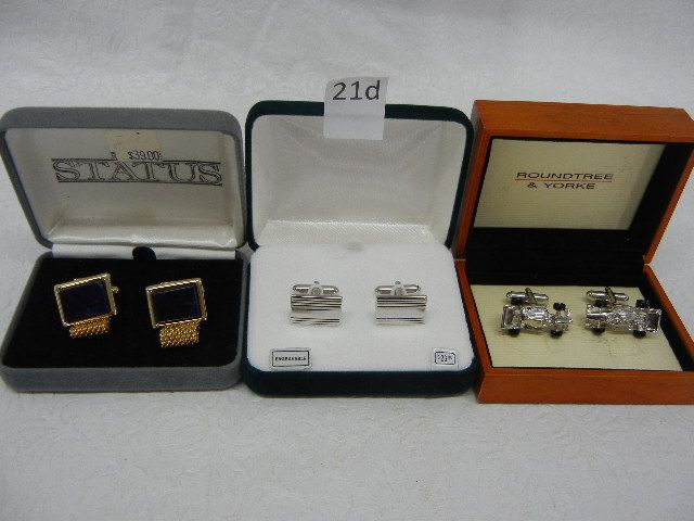 3 Pairs of Cuff Links: Status, Roundtree & Yorke, and 1 Unmarked