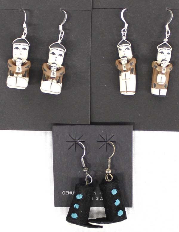2 Pairs of Santo Domingo Pottery Storyteller Earrings by Angel and Ralph Bailon and 1 Pair of Suede Moccasin Earrings, longest measures 1''L, the storytellers are signed