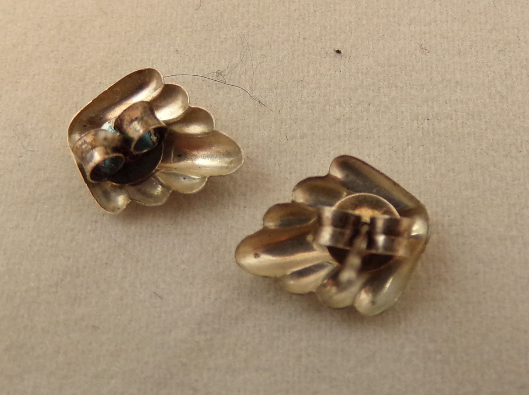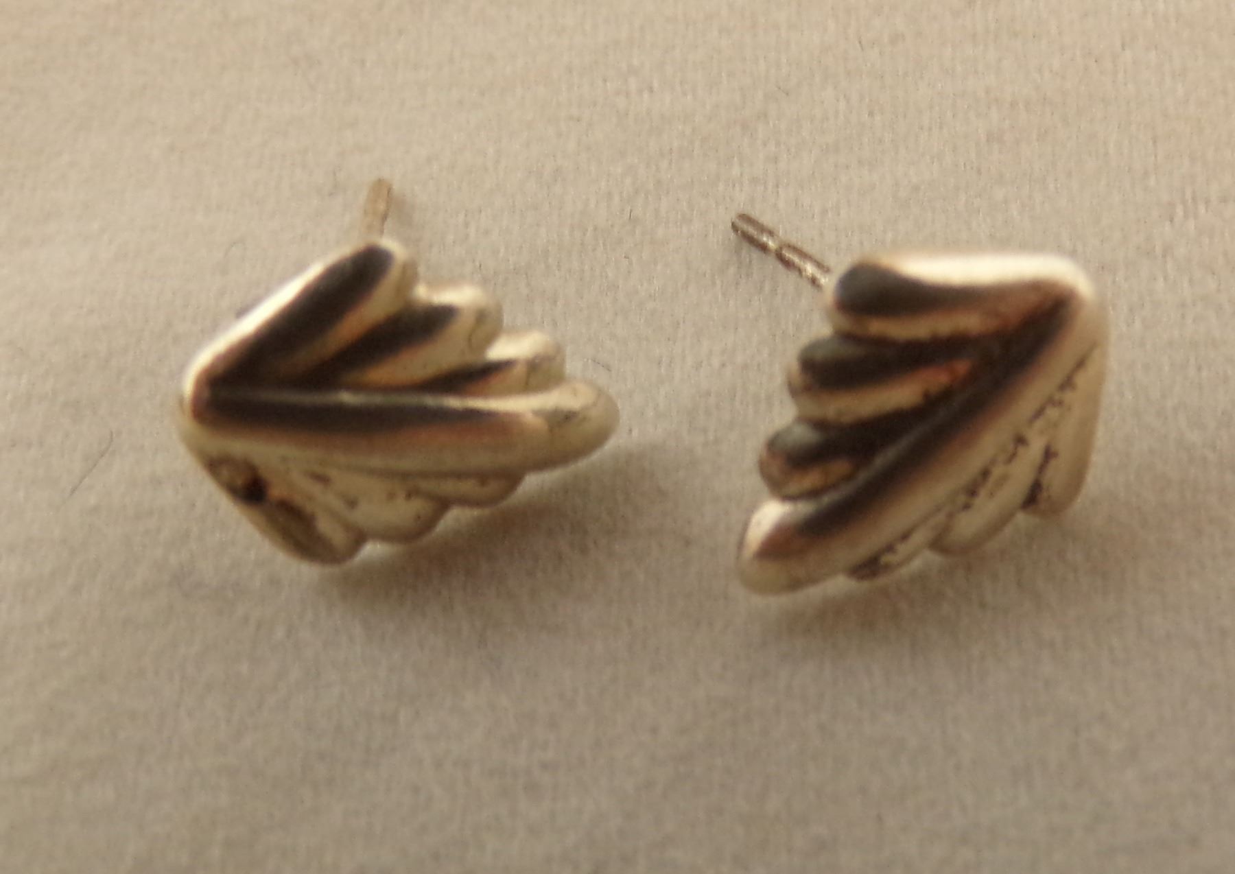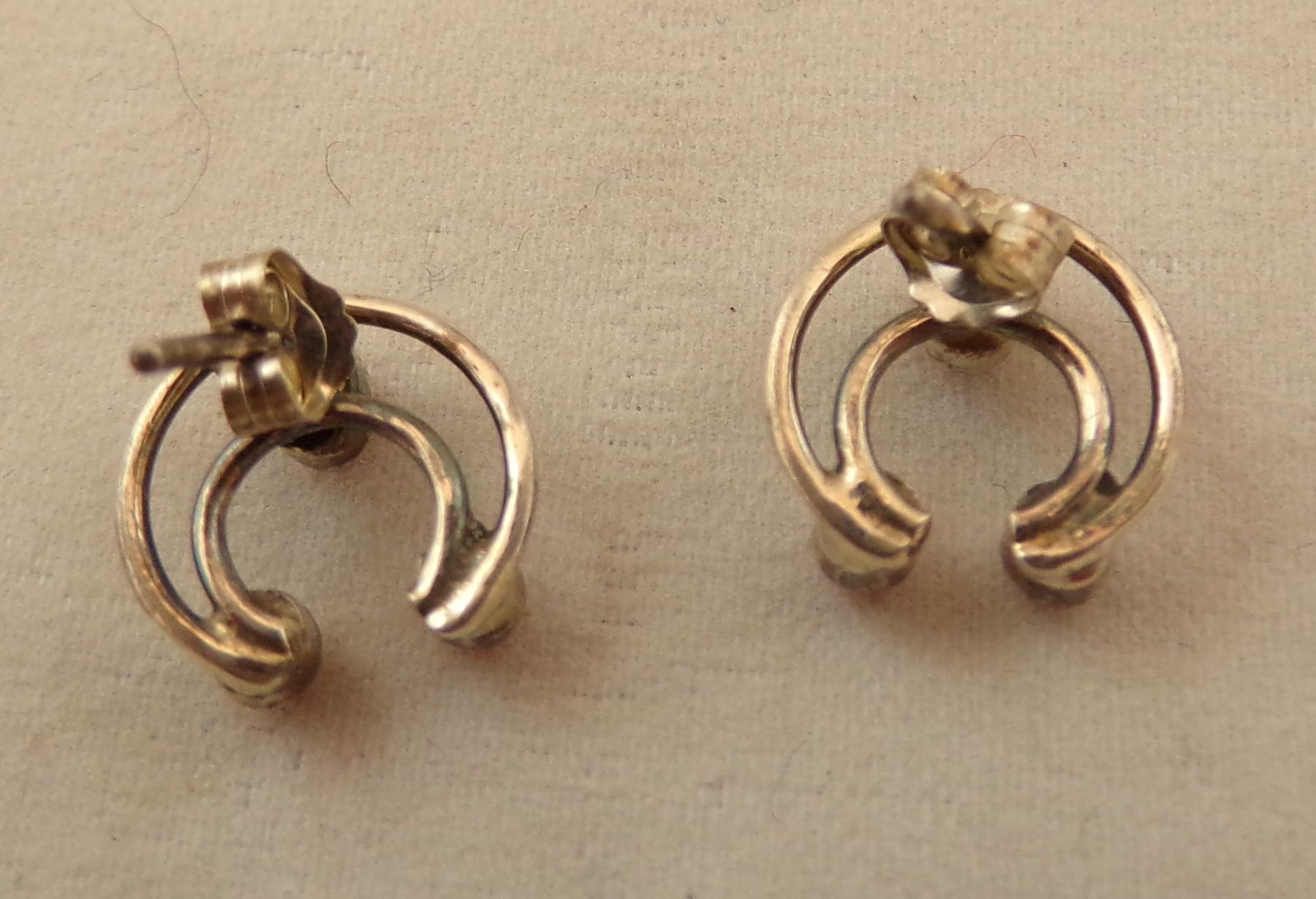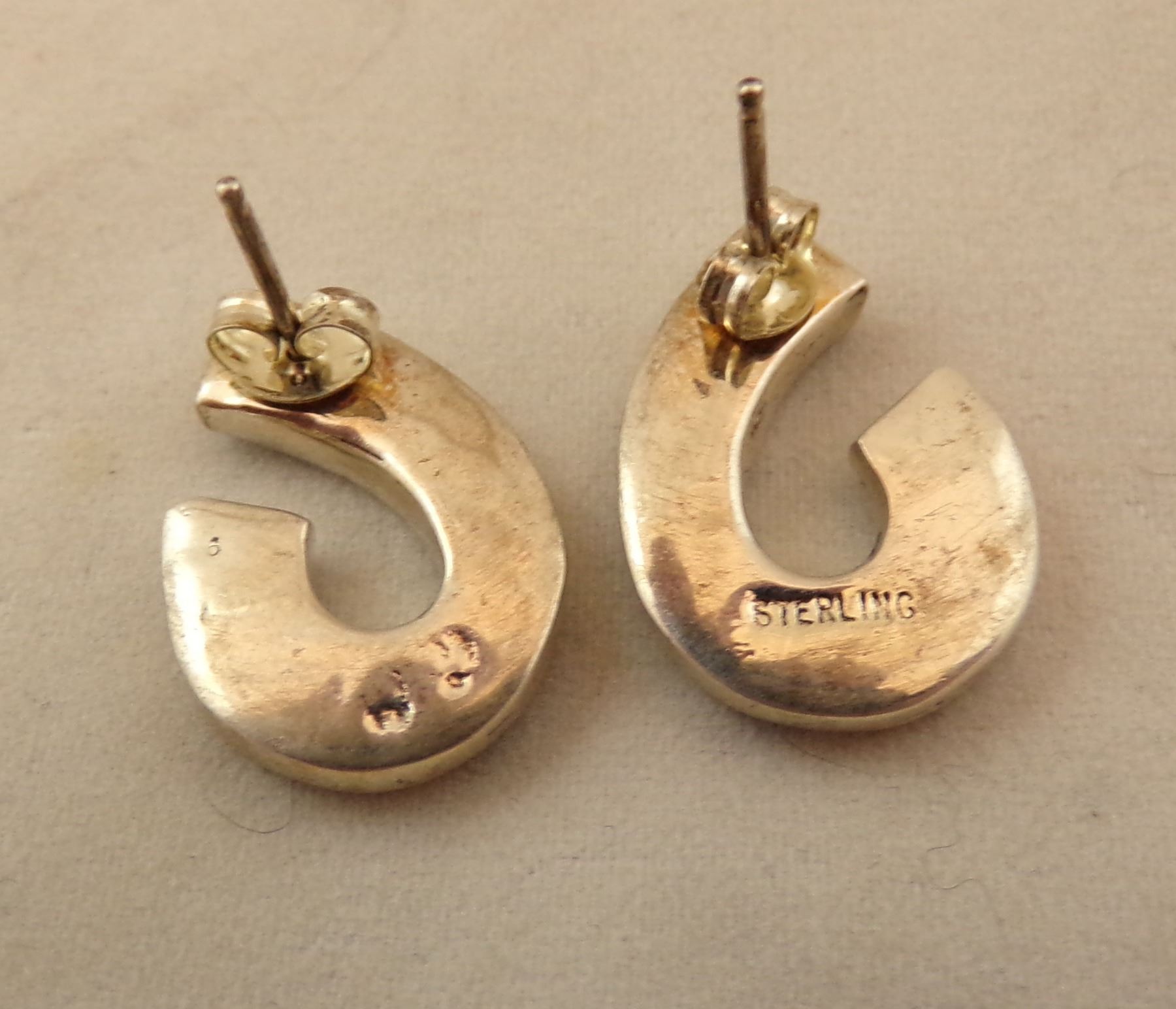 3 Pairs of Native American Sterling Earrings, includes 1. Zuni Sterling Petit Point Angel Coral Post Earrings, measure .5'' x .5'' 2. Navajo Sterling Leaf Post Earrings, measure .5'' x 3/8'' 3. Navajo Sterling Inlay Earrings by Dan Whitegoat, hallmarked and stamped sterling, measure 7/8'' x 5/8'', inlay is opal and onyx