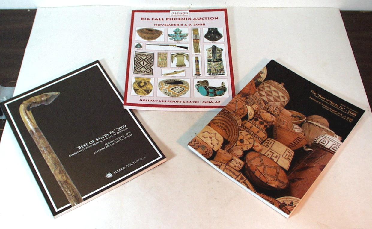 3 catalogs from past Allard auctions, including list of prices realized. All in new condition. August 2009 Santa Fe, November 2008 Phoenix, August 2008 Santa Fe.