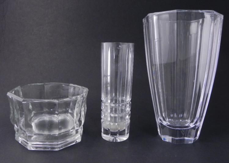 Here are three crystal pieces, all in very good condition. They include a cylinder vase with faceted pattern, an 8 sided vase, and shorter dish for flowers, or floating candles. The sizes are 3 1/2, 7 and 9 inches tall. * These will bring some elegance to any table.