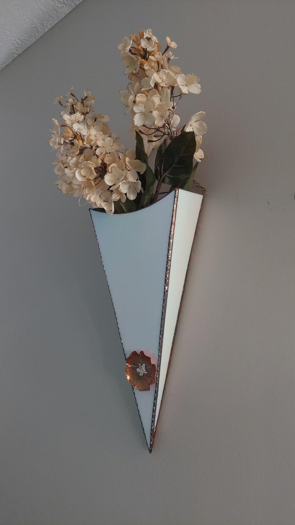 3 Pc Group - 2 Leaded Stained Glass Custom Sconces With Florals & Floral Vase As shown
