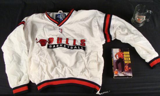 Offered here is a lot of three Chicago Bulls items. These items are sure to please any devoted Chicago Bulls fan! Included in this lot: Bulls Starter Pullover Size: Medium White with red and blue trim, very good used condition