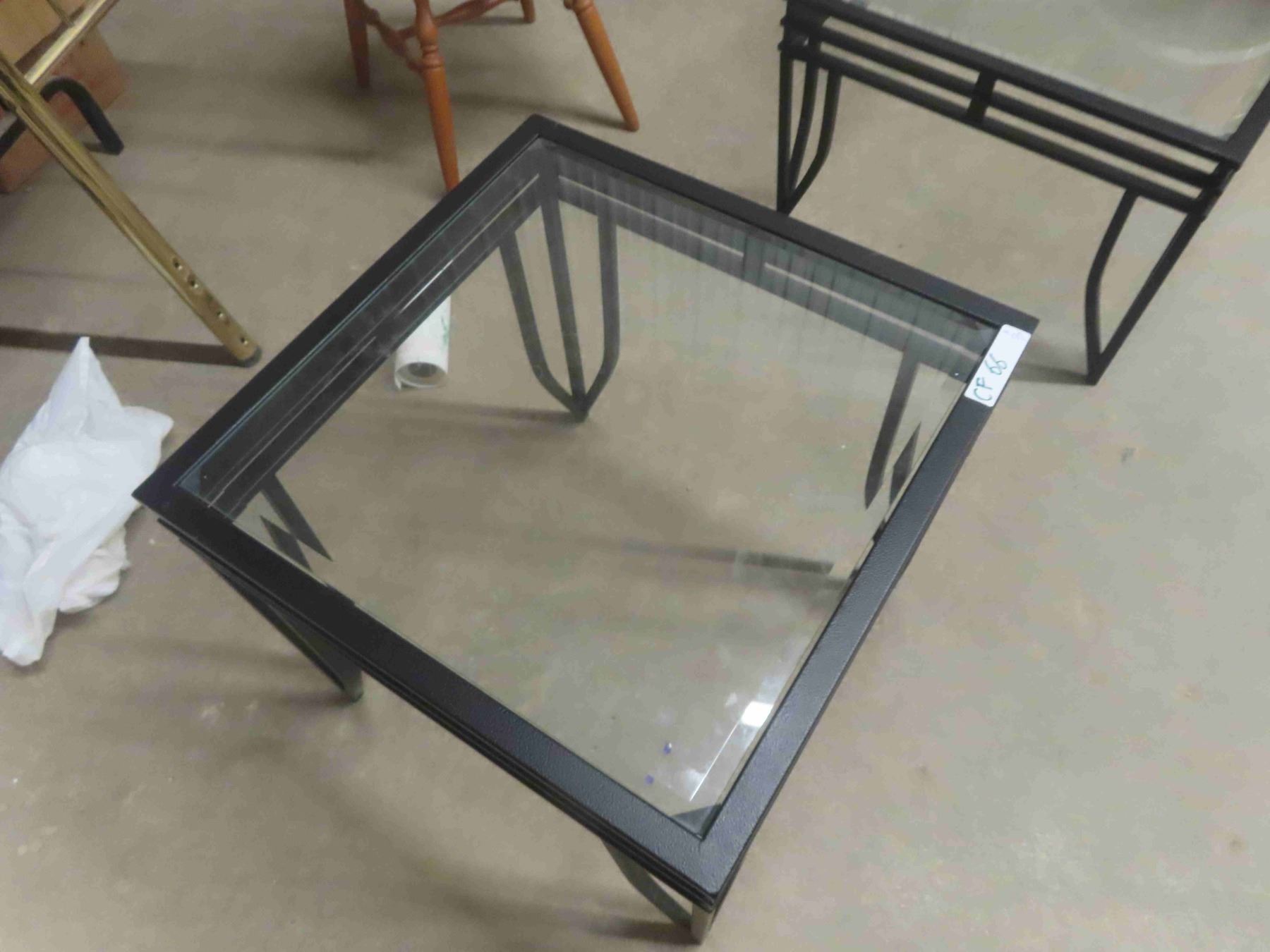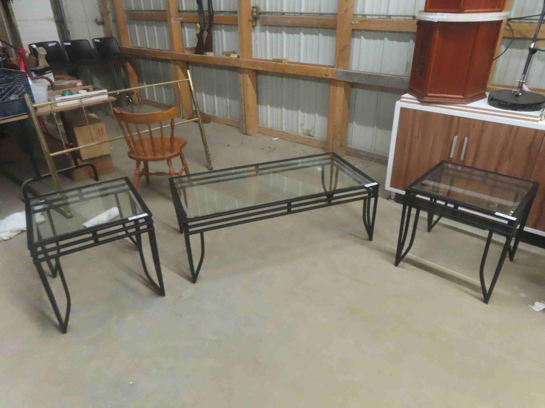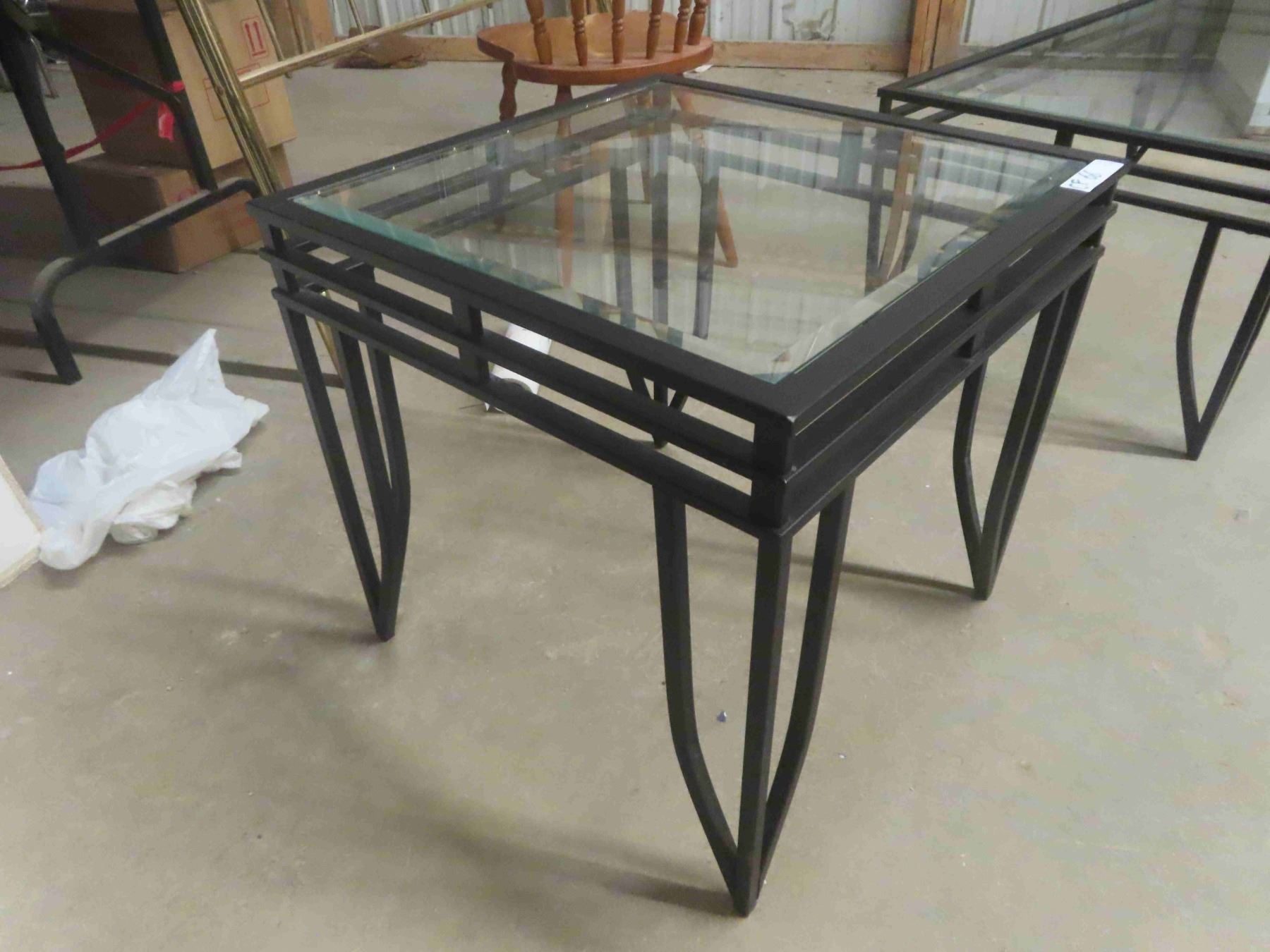 3 Pc Metal + Glass Table Set ; Coffee Table 17" x 24" x 48" & 2 End Tables 21" x 21.5" x 21.5"