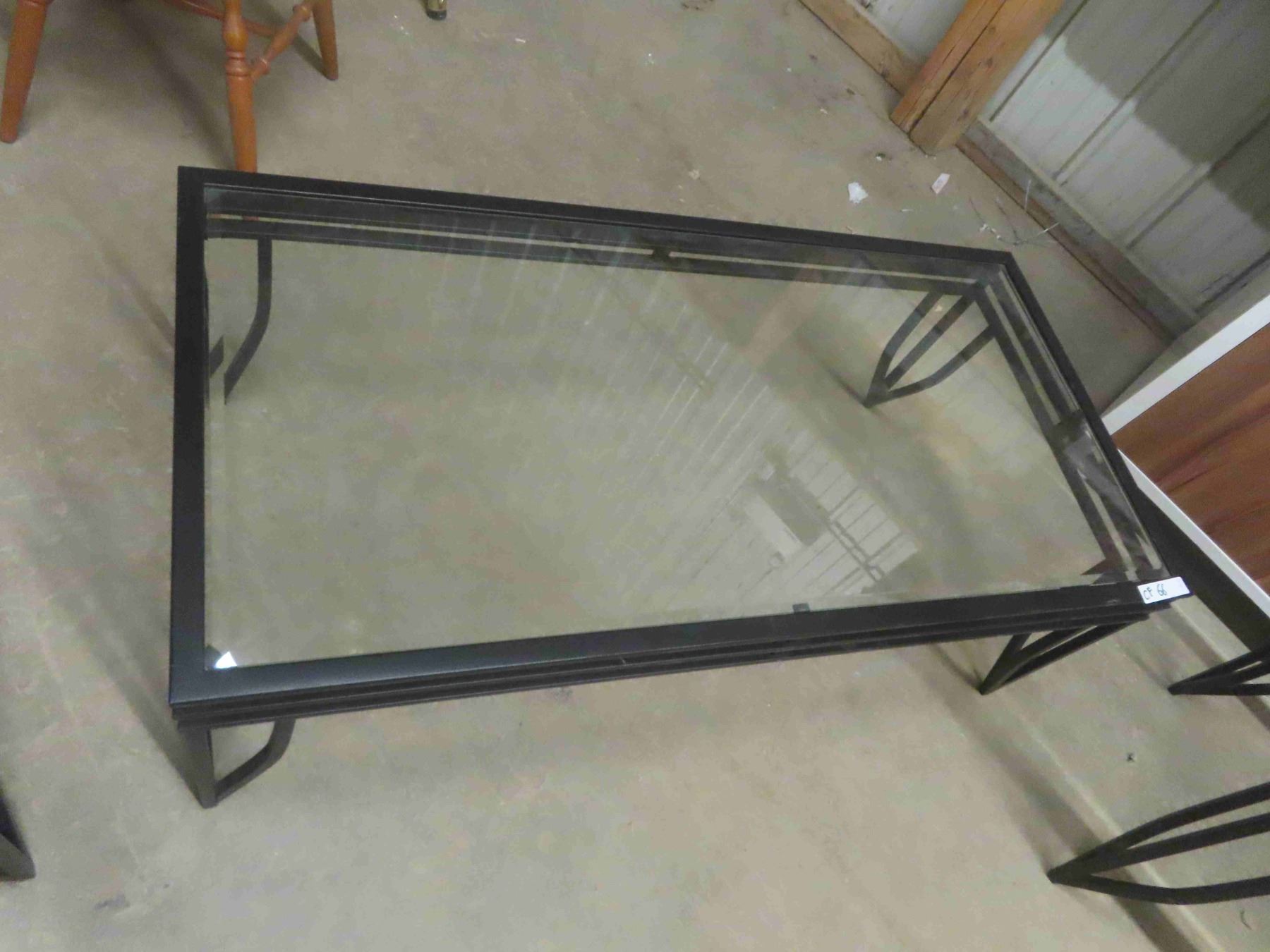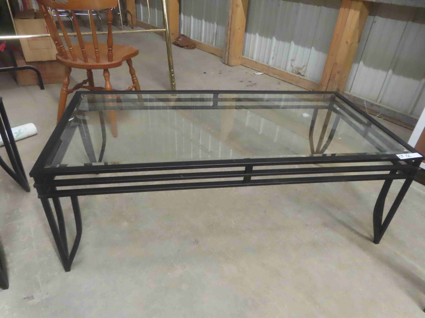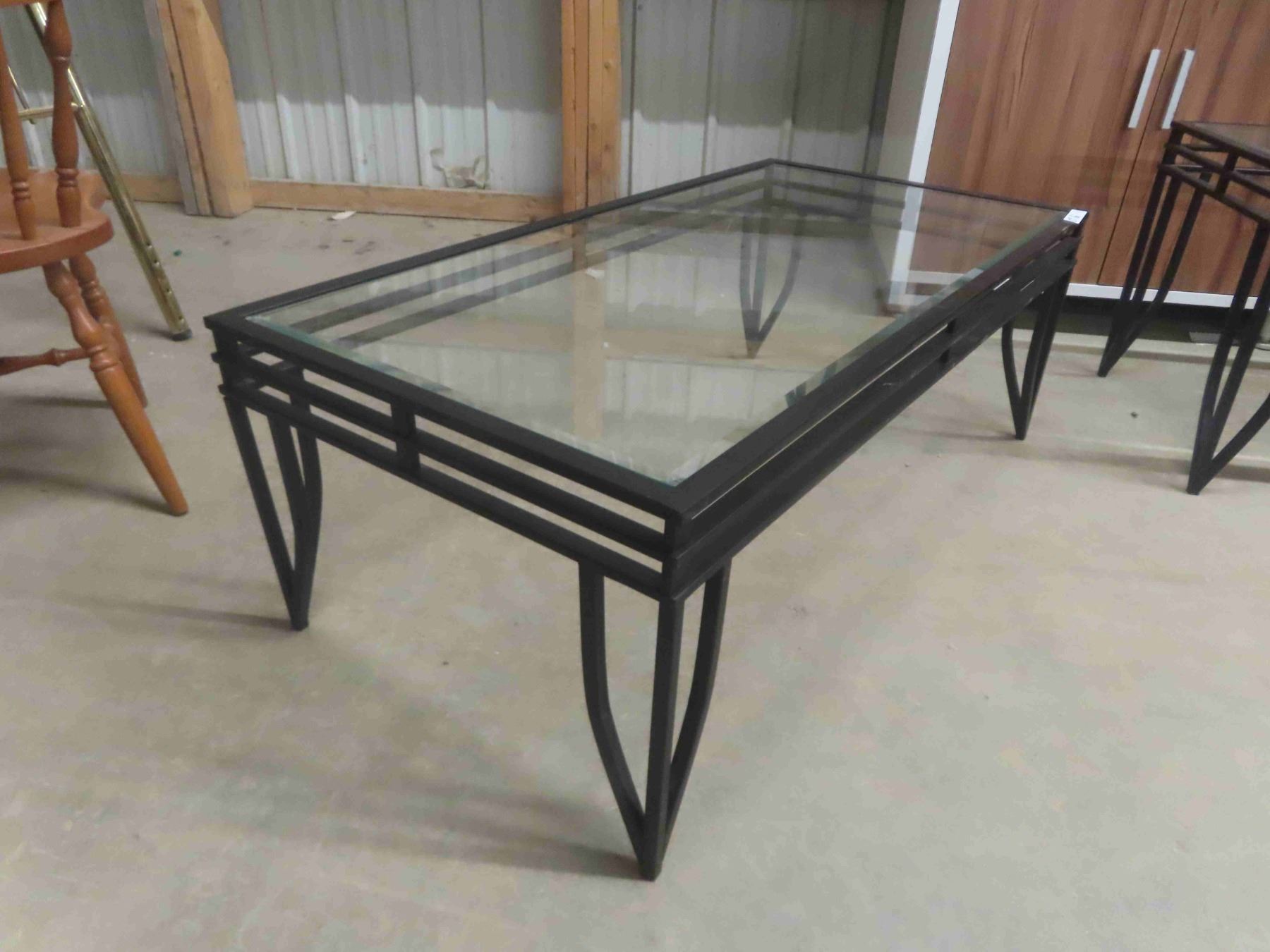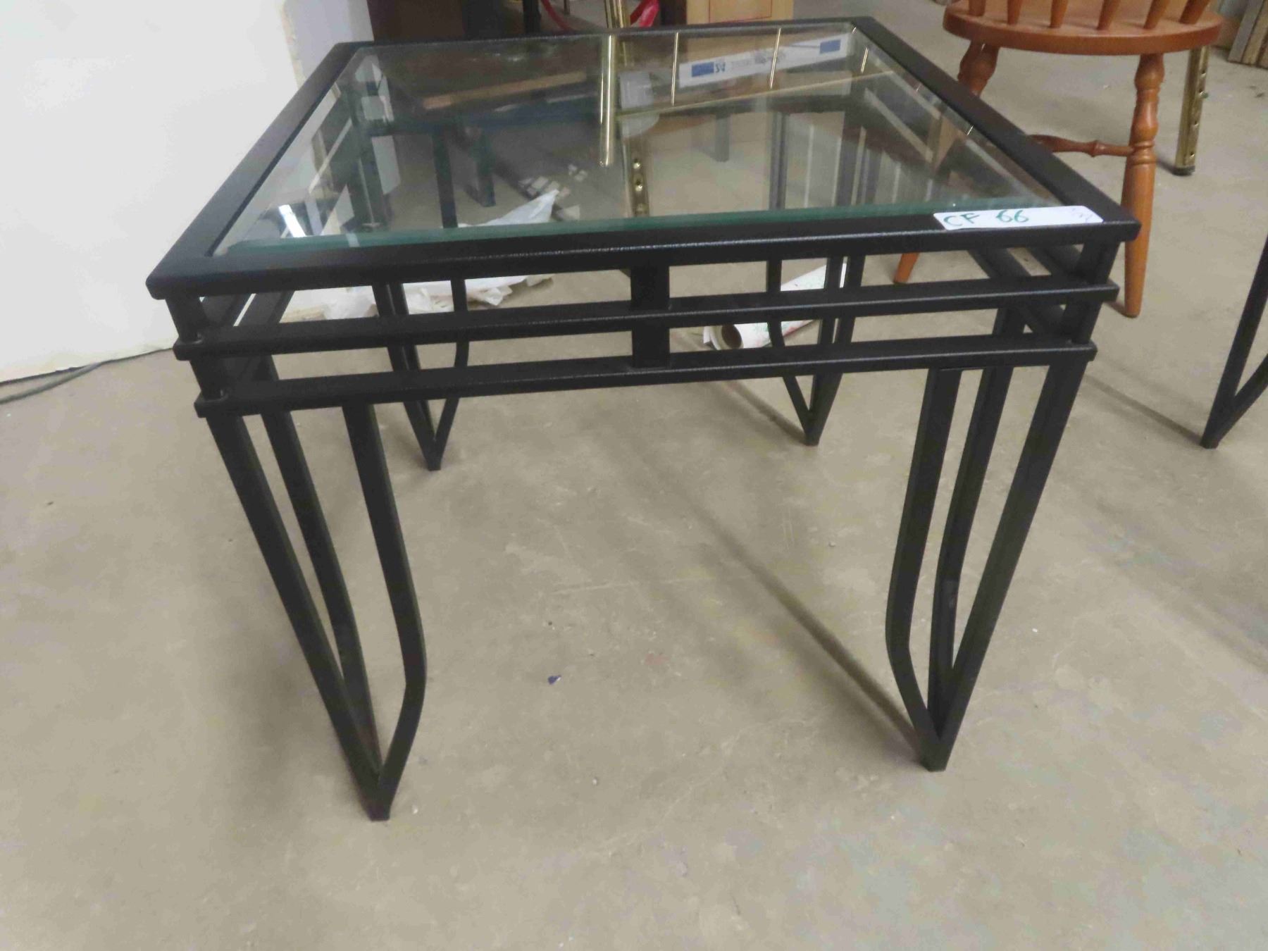 3 Pc Metal + Glass Table Set ; Coffee Table 17" x 24" x 48" & 2 End Tables 21" x 21.5" x 21.5"