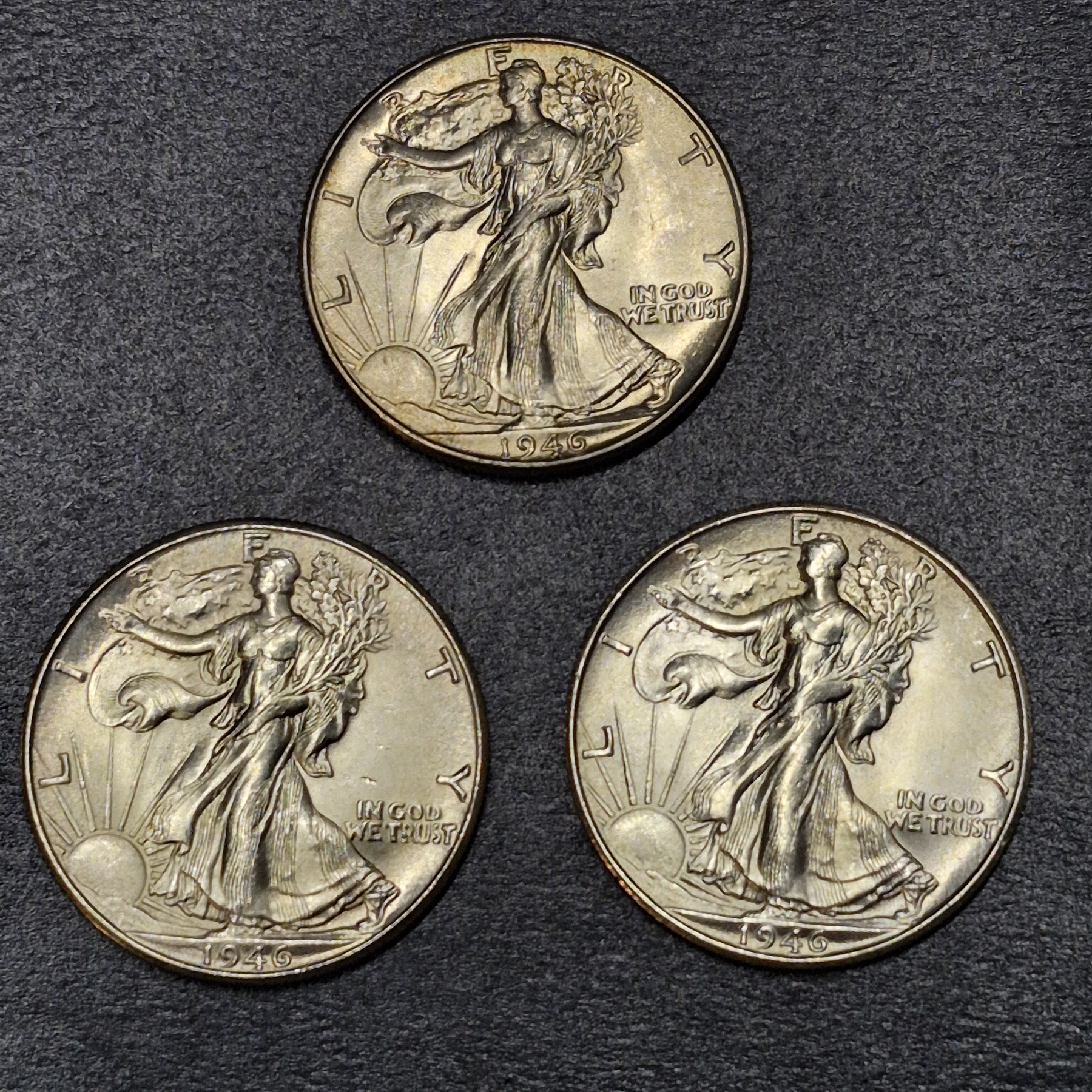 3 Pcs - 1946 P / 1946 D / 1946 S Walking Liberty Half Dollars - High Grade - See Pics
