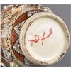 To include a handles ewer finely decorated with figures within a landscape richly gilded and very well done, 8.25"H, a lotus shaped bowl finely decorated to d depict figures within an interior the rim decorated in gilt against a black ground, the base with two character seal mark in gold against a black ground 4.75"D X 1.75"H, together with a Satsuma vase depicting figures with simulated loose rings and two character mark to base 9.5"H, the vase with rim repair, the two other pieces perfect, very well done, early 20th century.