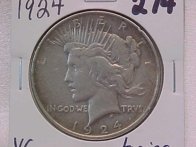 3 Peace $: 1922 EF toning, 1922 G, 1924 VG toning