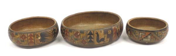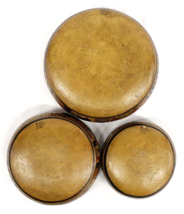 3 Peruvian Graduated Pottery Bowls, largest measures 3'' x 8''