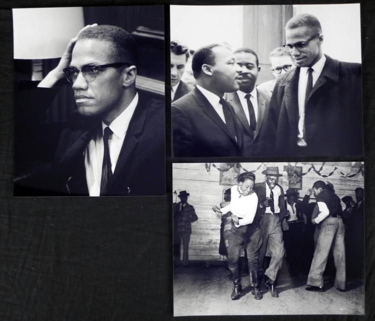These three photos show some vibrant scenes from African American history. These are 8 x 10 black & white glossy high quality archive reprints. All are in excellent condition. They feature: Malcolm X, 1964 -photographer: Marion Trikosko Malcolm X and Martin Luther King, 1964 -photographer: Marion Trikosko Jitterbug, Negro Juke Joint, 1939 -photographer: Marion Post Wolcott