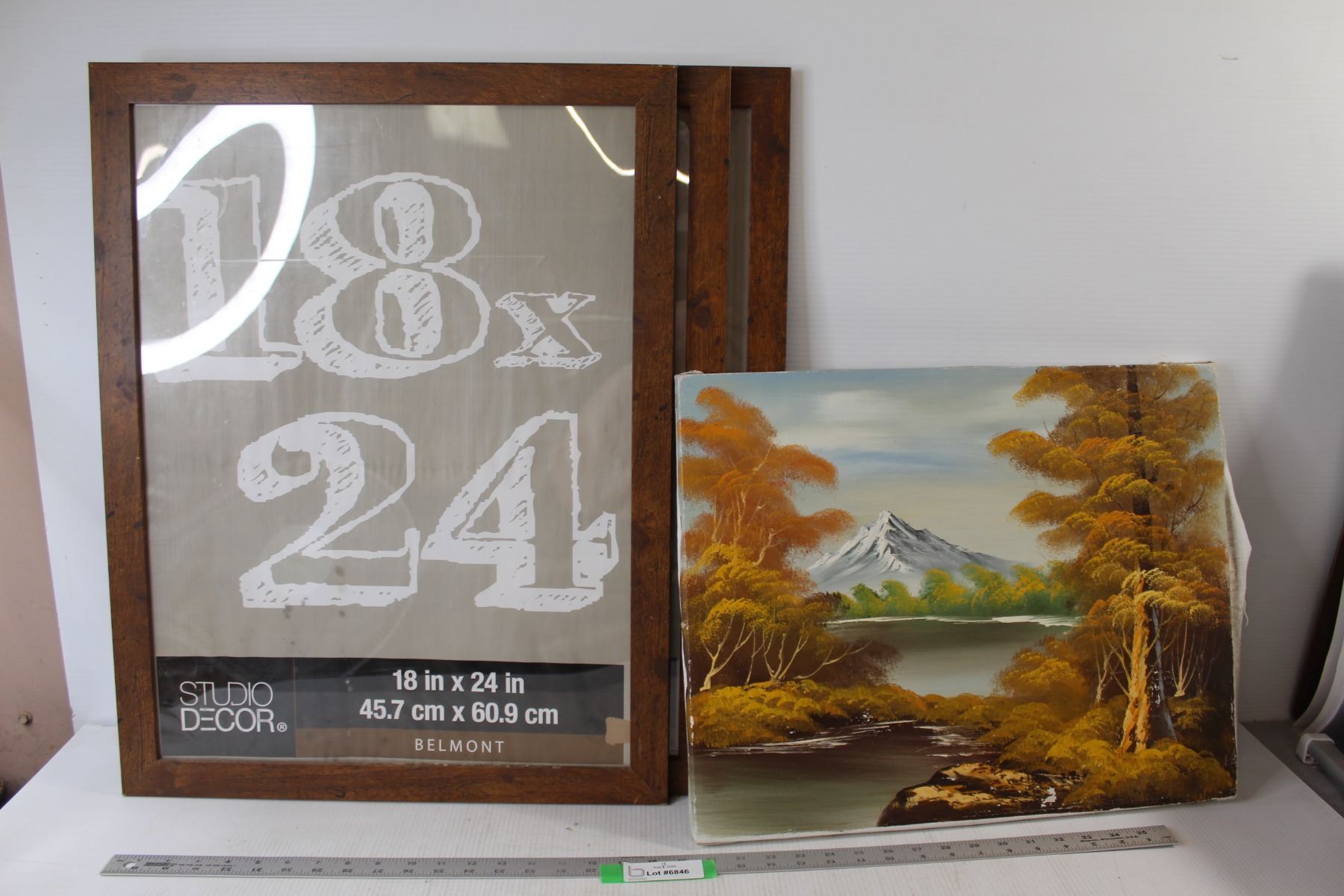 (3) Picture Frames - 18" x 24", Landscape Nature Mountain Canvas Painting - 20" x 16"