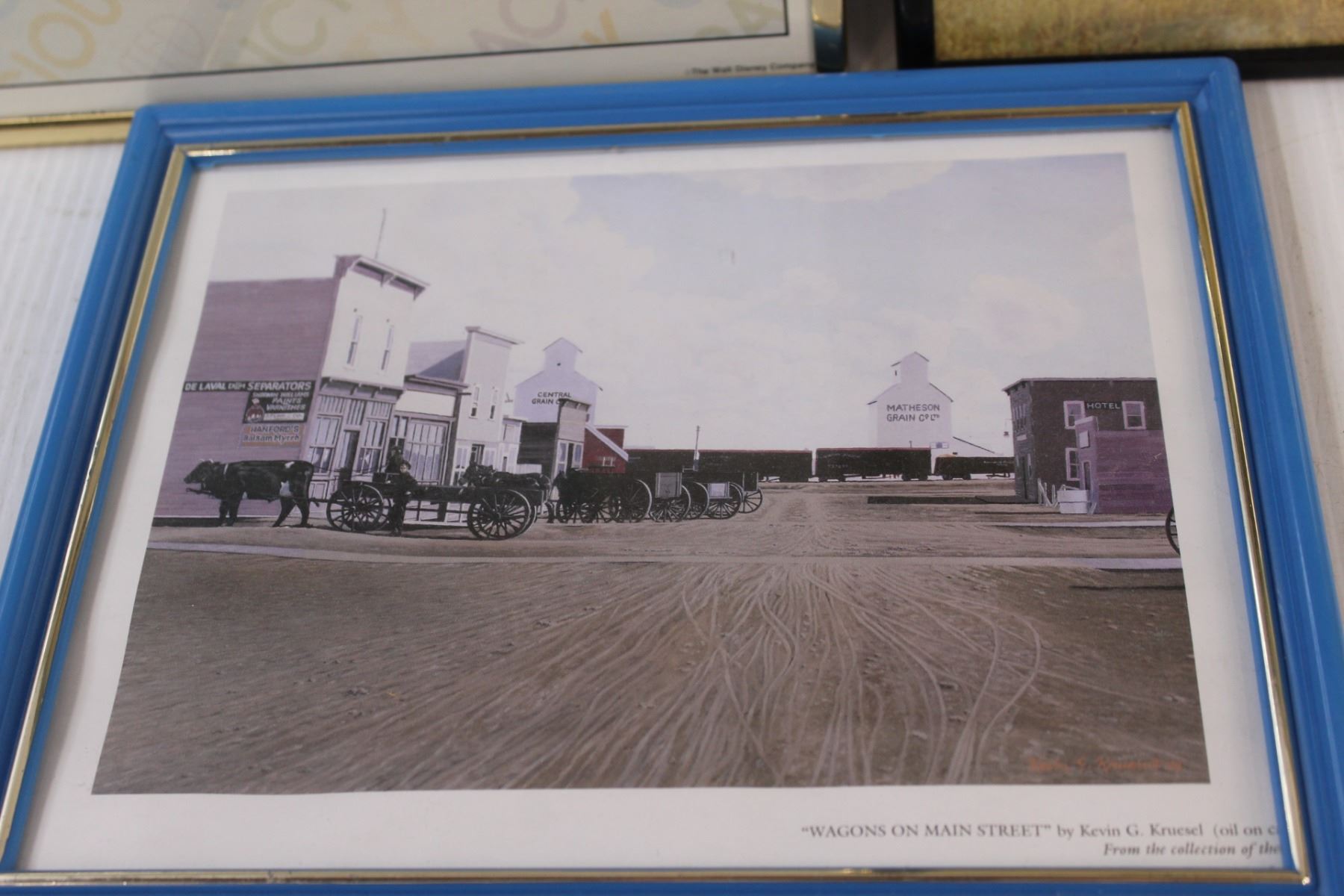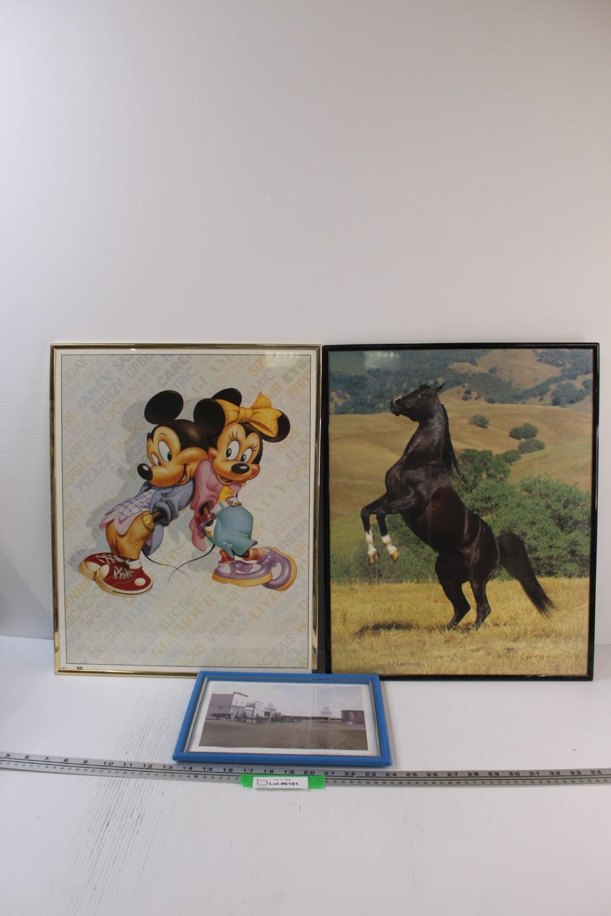 (3) Pictures: Mickey Mouse, Stallion, Matheson Grain Elevator & Town Mainstreet - 20" x 16" & 11" x 9"