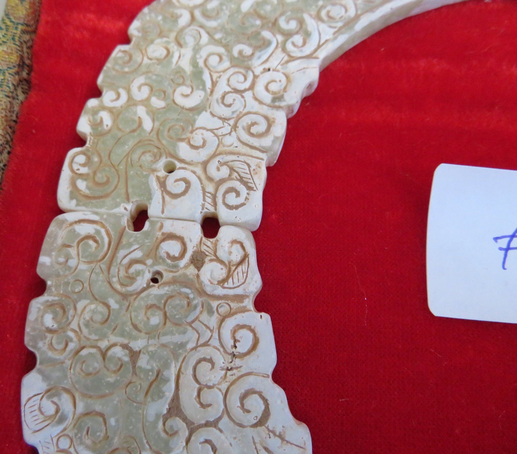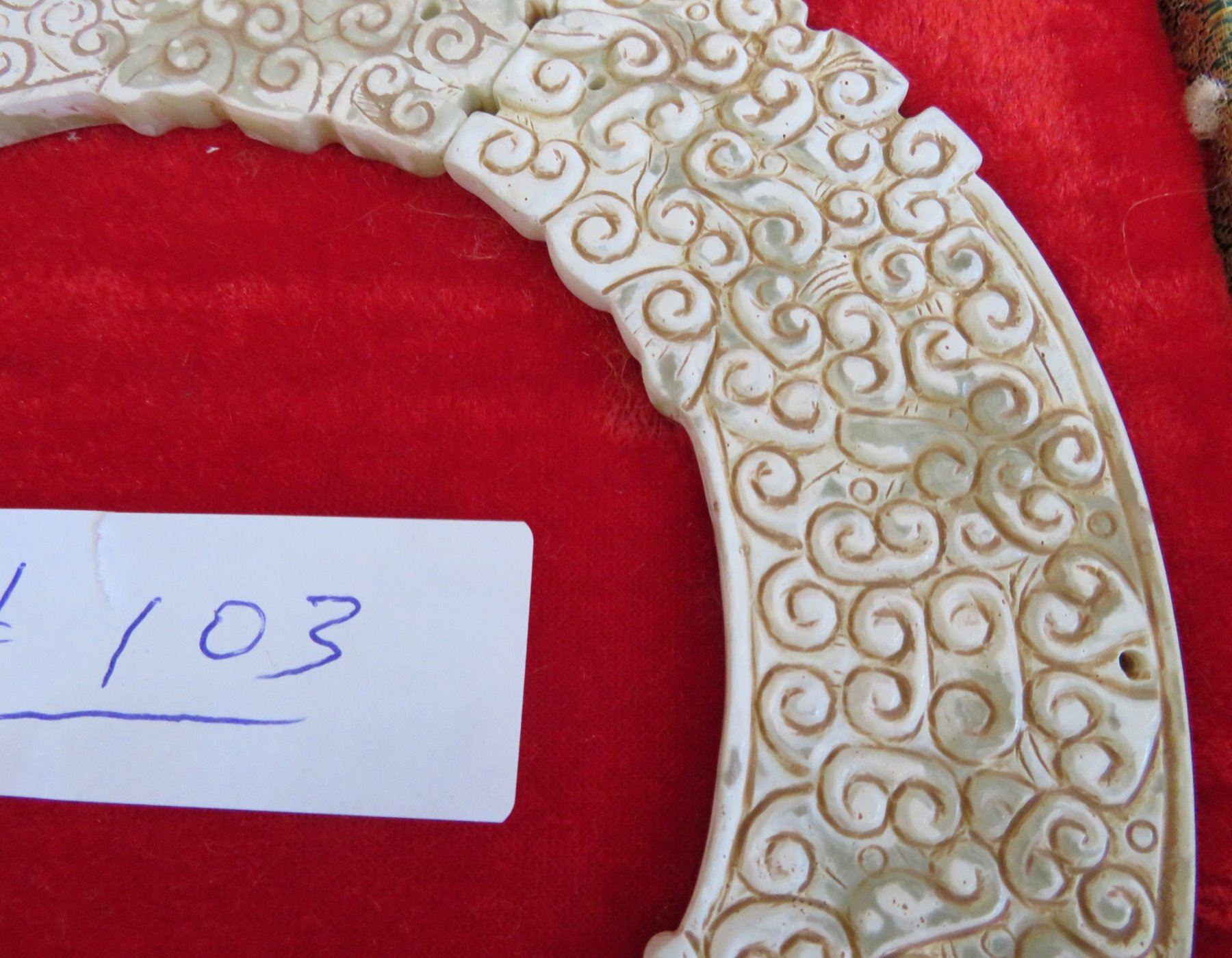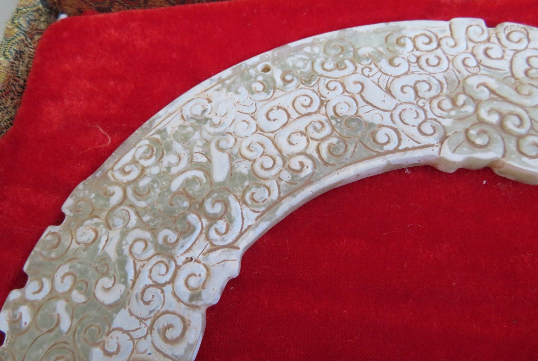 3-Piece Jade Bi, Han dynasty. Made of jade, the item measures 8" . China. Fine carving. Condition: Good, see images. Shipping: $28.50 w/insurance and signature, double-boxed.