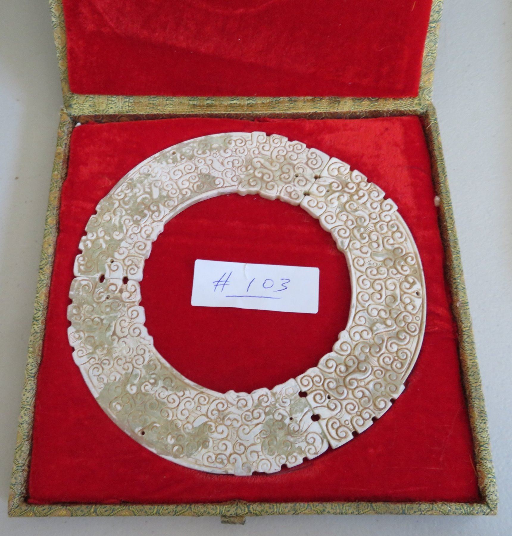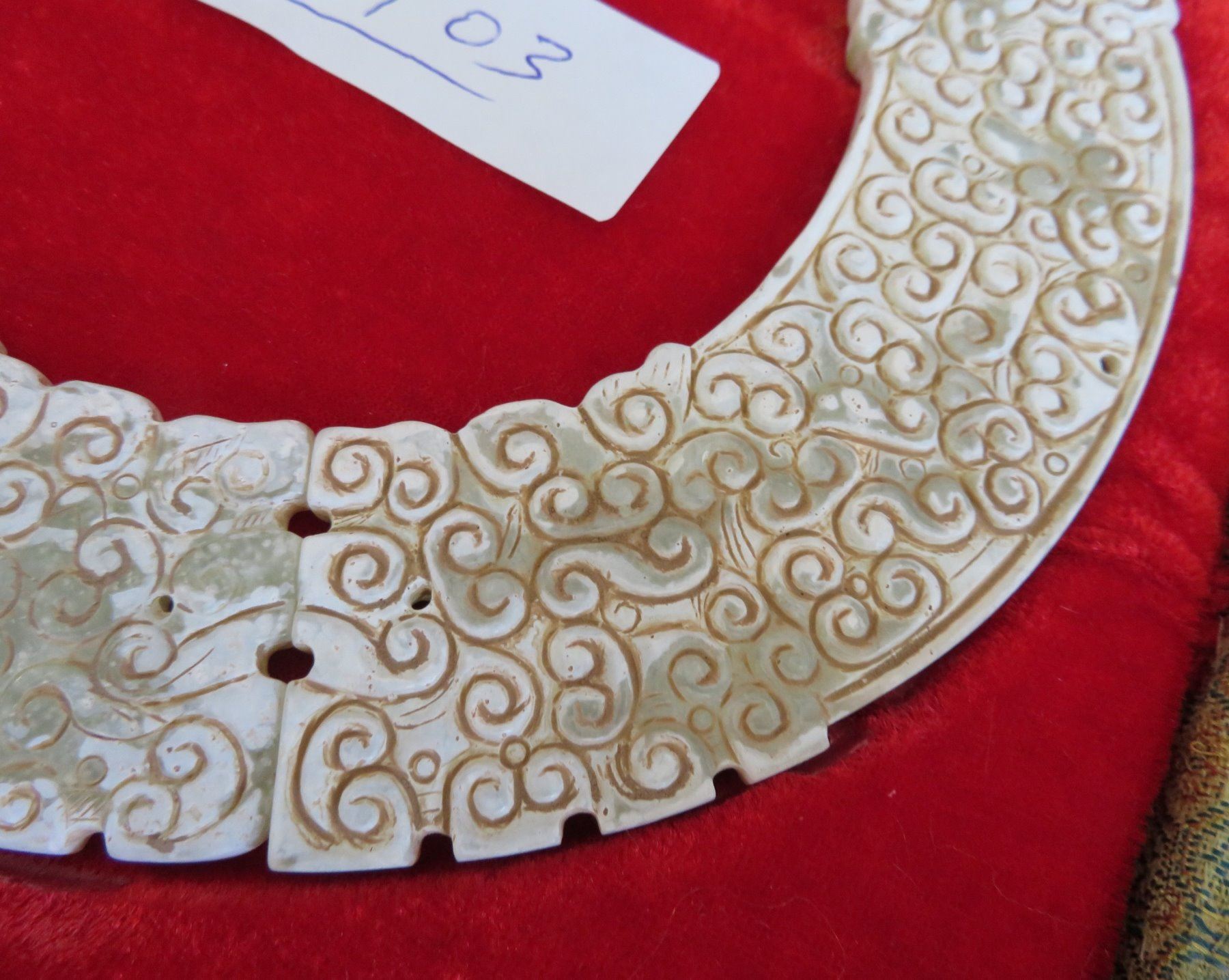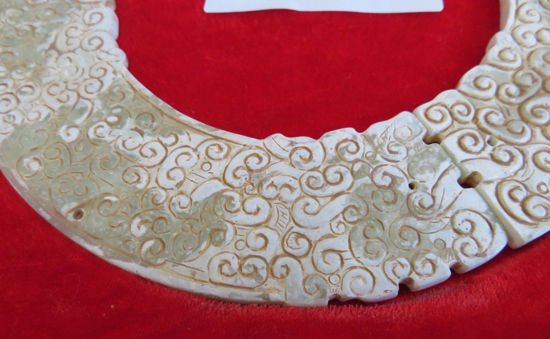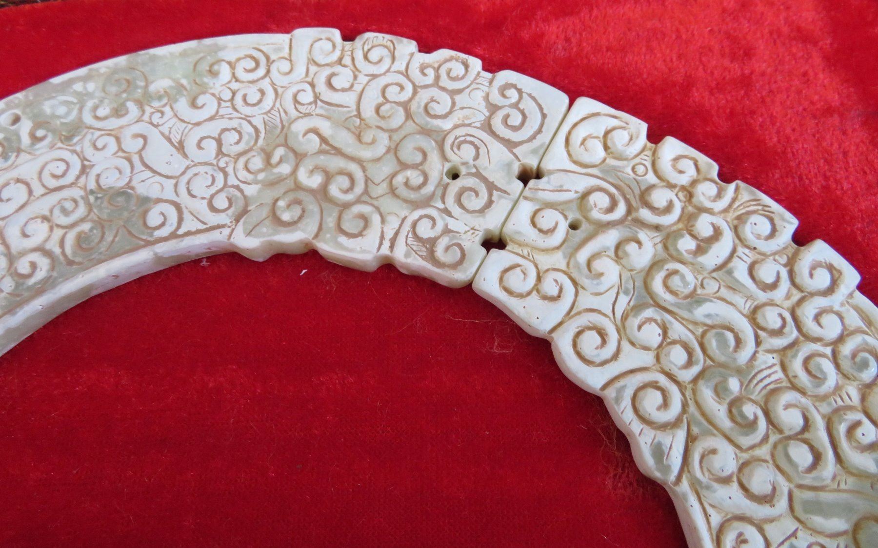 3-Piece Jade Bi, Han dynasty. Made of jade, the item measures 8" . China. Fine carving. Condition: Good, see images. Shipping: $28.50 w/insurance and signature, double-boxed.