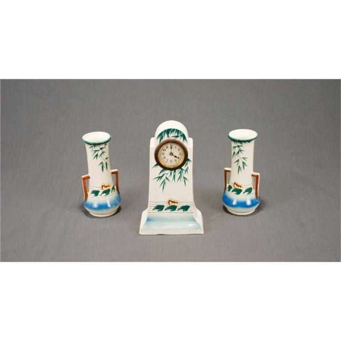 "175Porcelain Mantle Clock Set Made in Czechoslovakia 9"" 175-325"