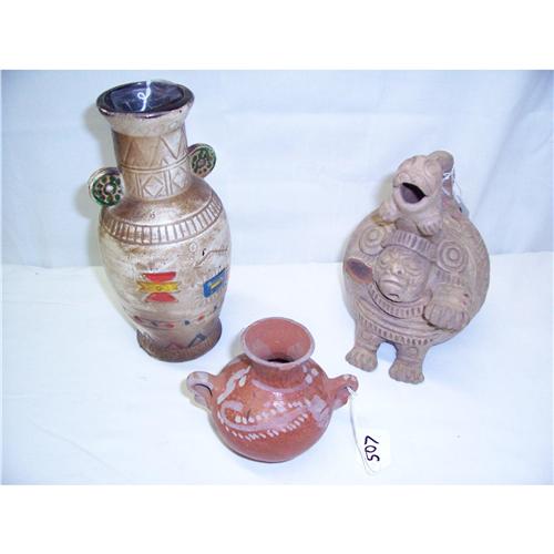 3 Piece Lot Mexican / Mayan Pottery