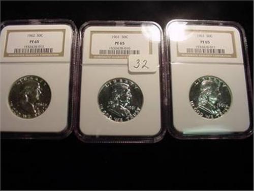 3 Piece Lot of 1961 Franklin Half Dollars NGC PF 65