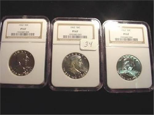 3 Piece Lot of 1962 Franklin Half Dollar NGC PF 67