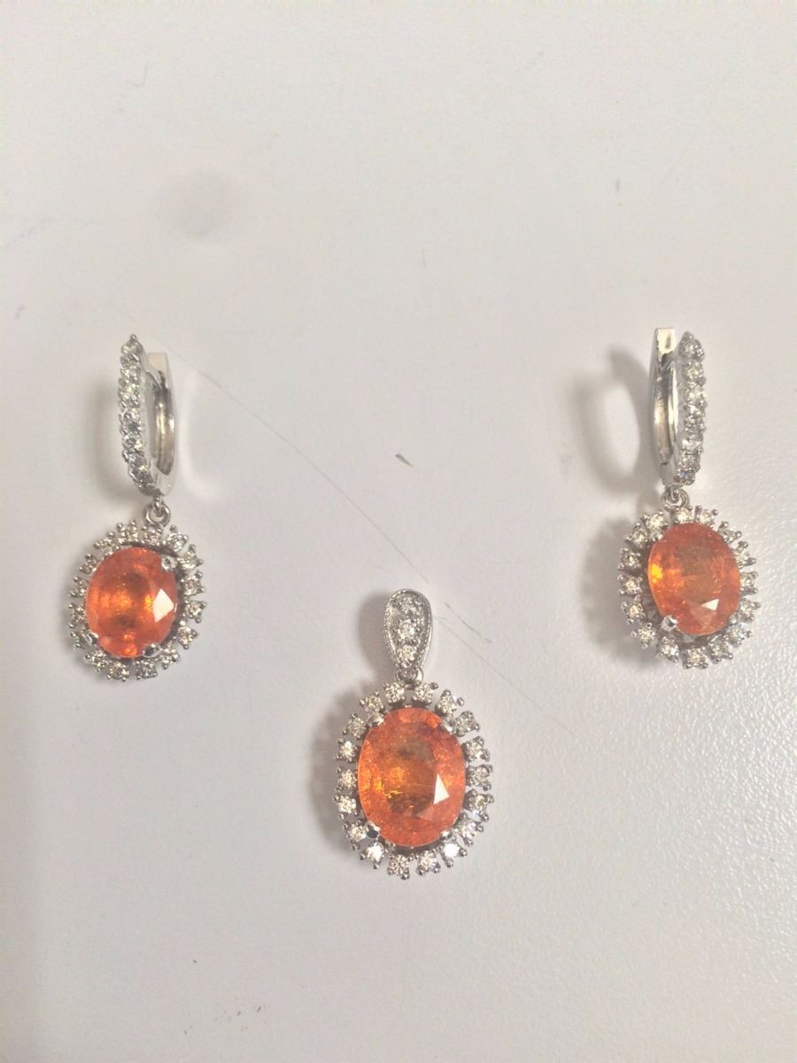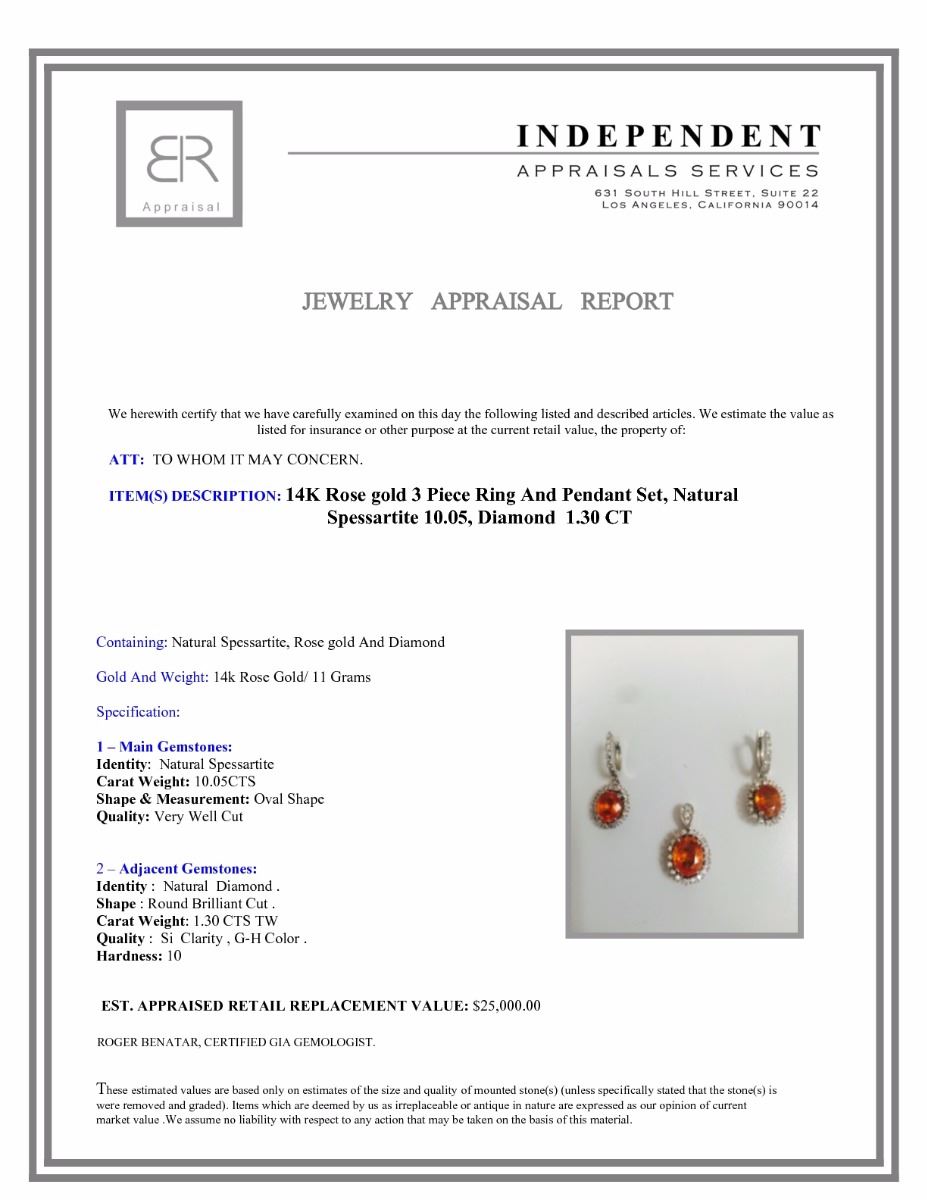 3 Piece Ring And Pendant Set 14k Rose gold:11 Grams Natural Spessatite:10.055 CT Diamond:1.30 CT