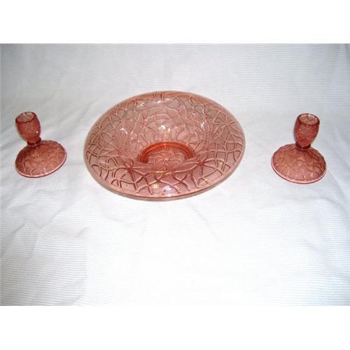 <tr><td>Title:3 Piece Set of Peach Bowl and Candle Holders</td></tr>