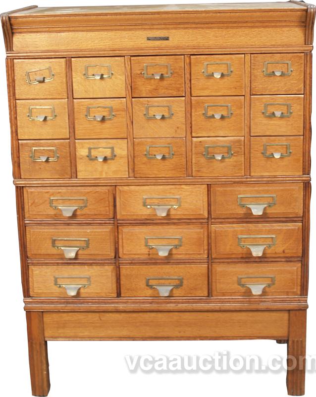 3-Piece Stacking Tiger Oak Filing Cabinet System w/ brass pulls, 24 drawers