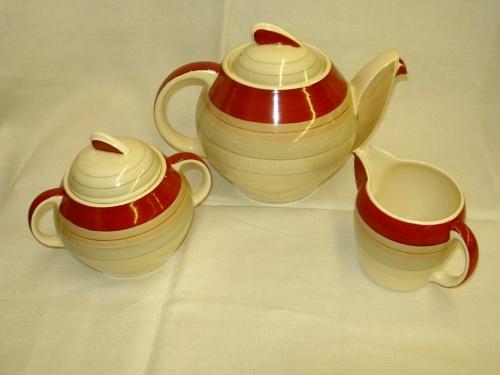 3 Piece Susie Cooper Teapot, Cream & Sugar, *noting: chips on both spouts