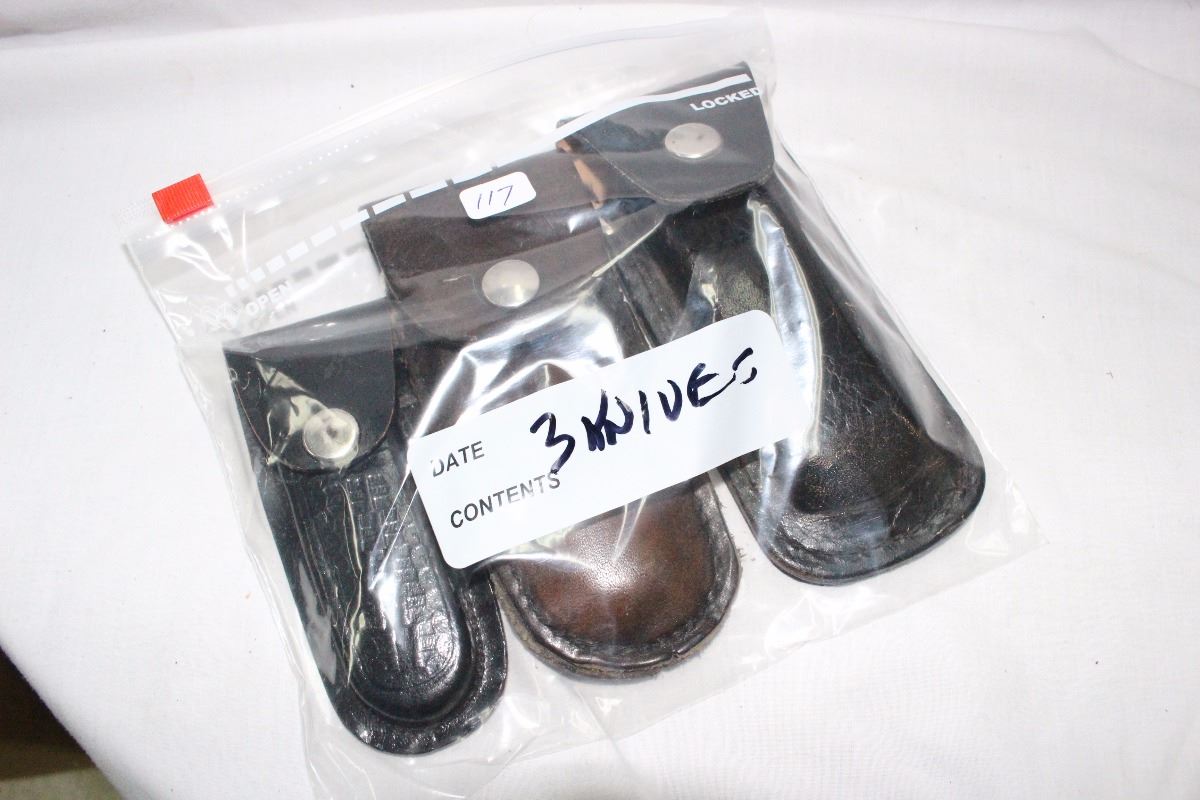 3 Piece Various Sized Lock Blades with Leather Sheath