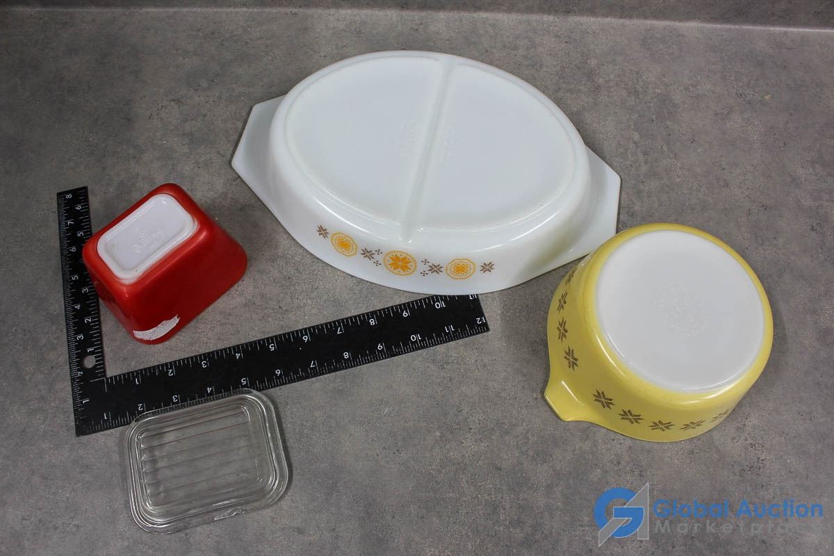 (2) Town & Country 1963 - 1967 & Primary Color Fridge Dish w/ Lid - Lid has a chip
