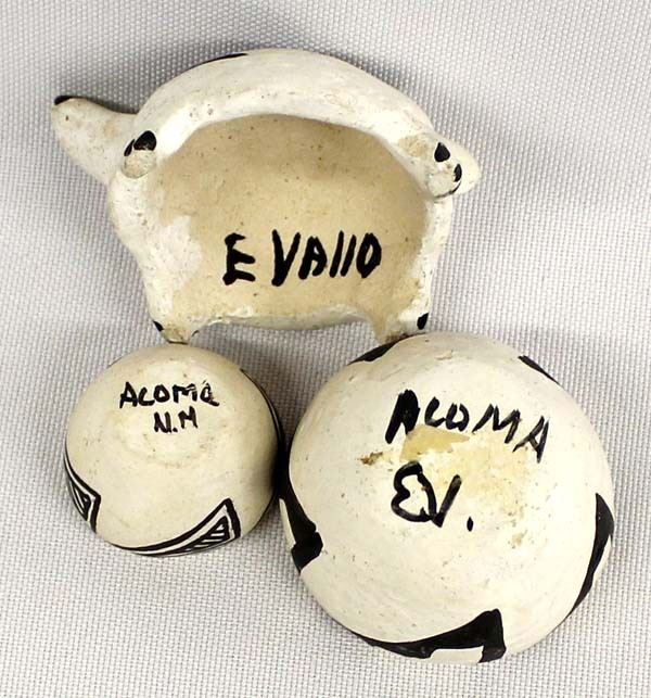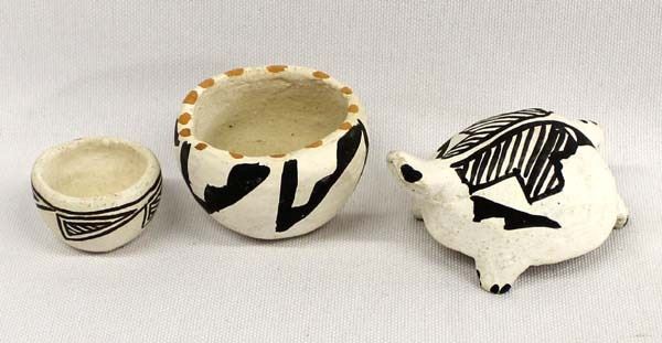 3 Pieces of Native American Acoma Pottery Miniatures, largest measures 1.5'' x 1'', includes turtle by E. Vallo