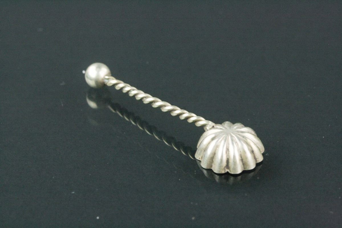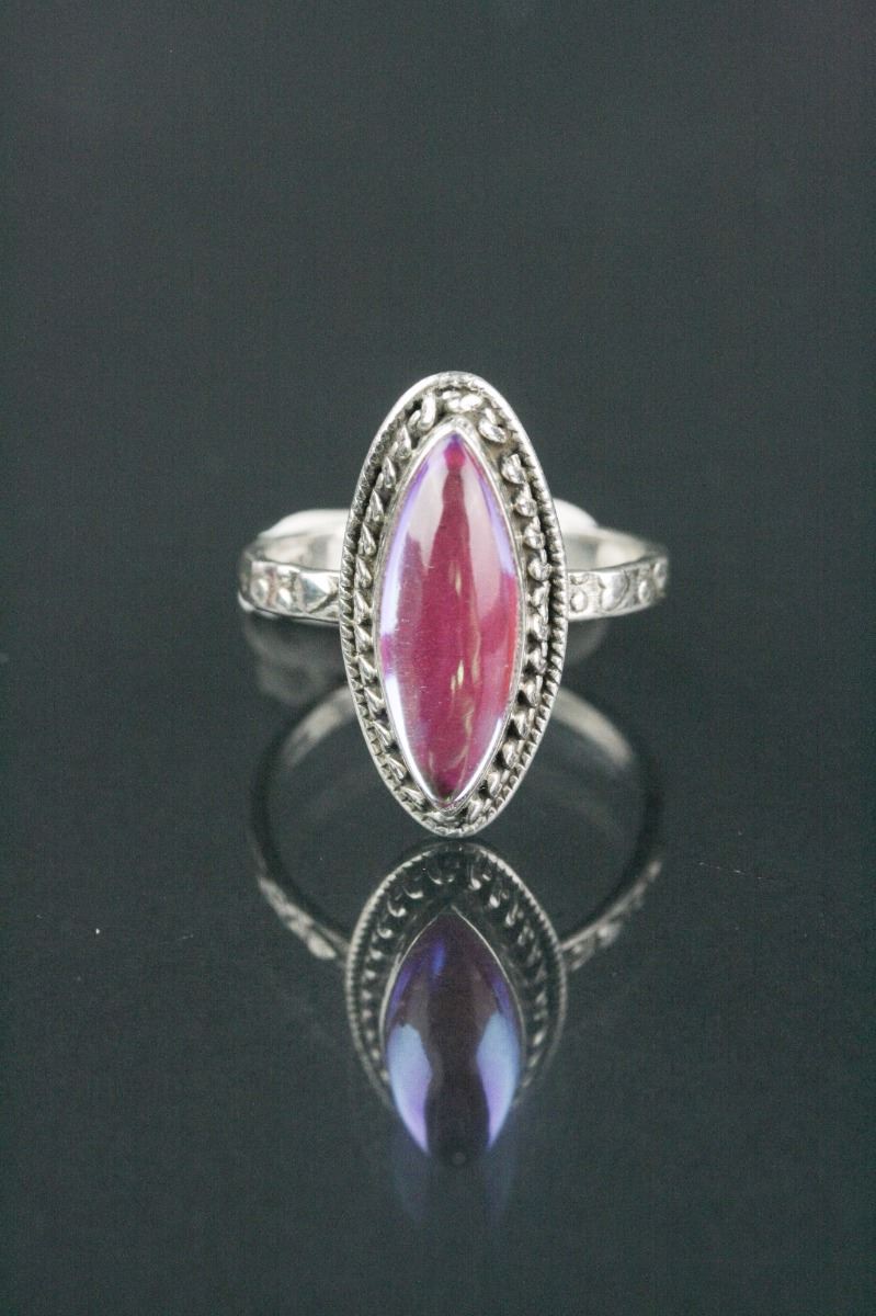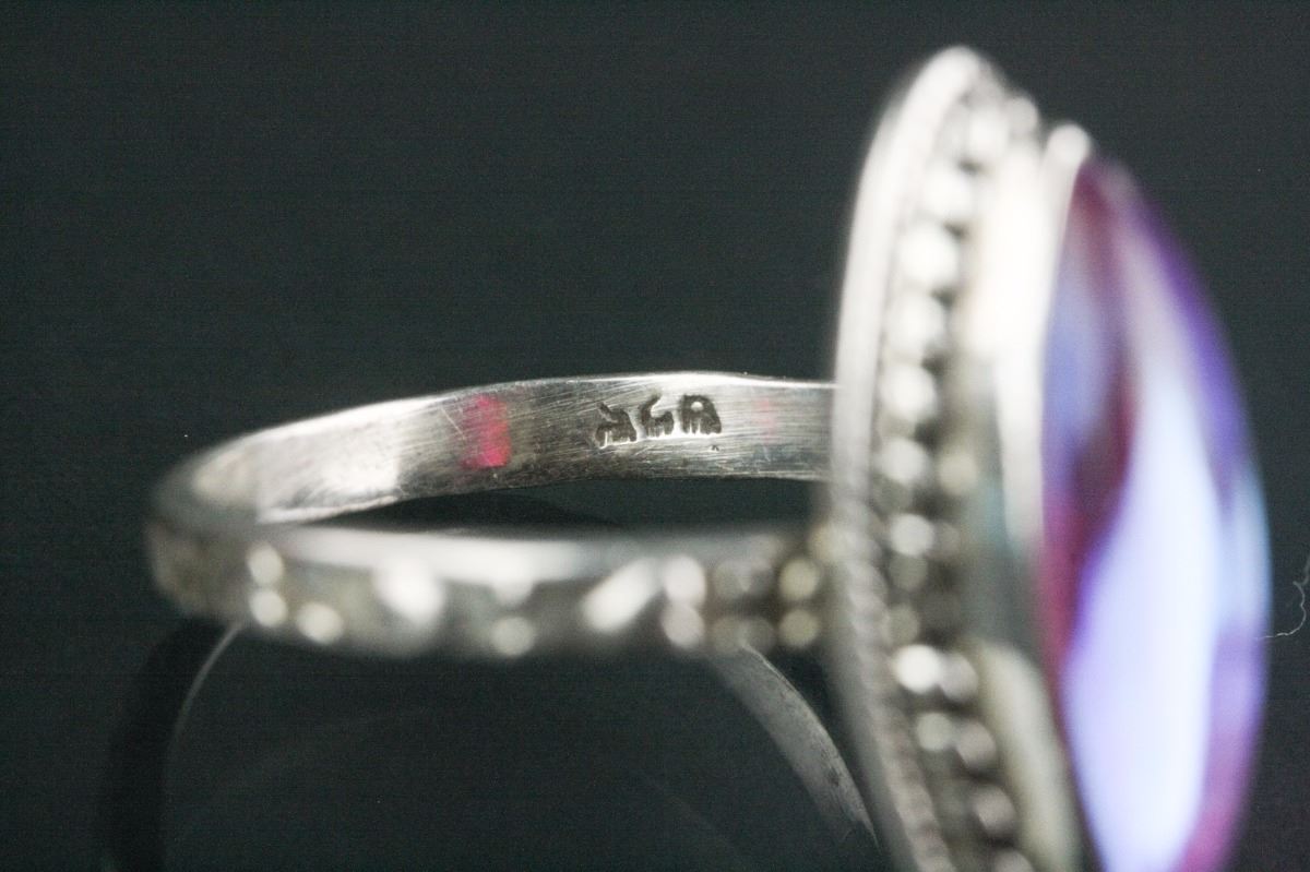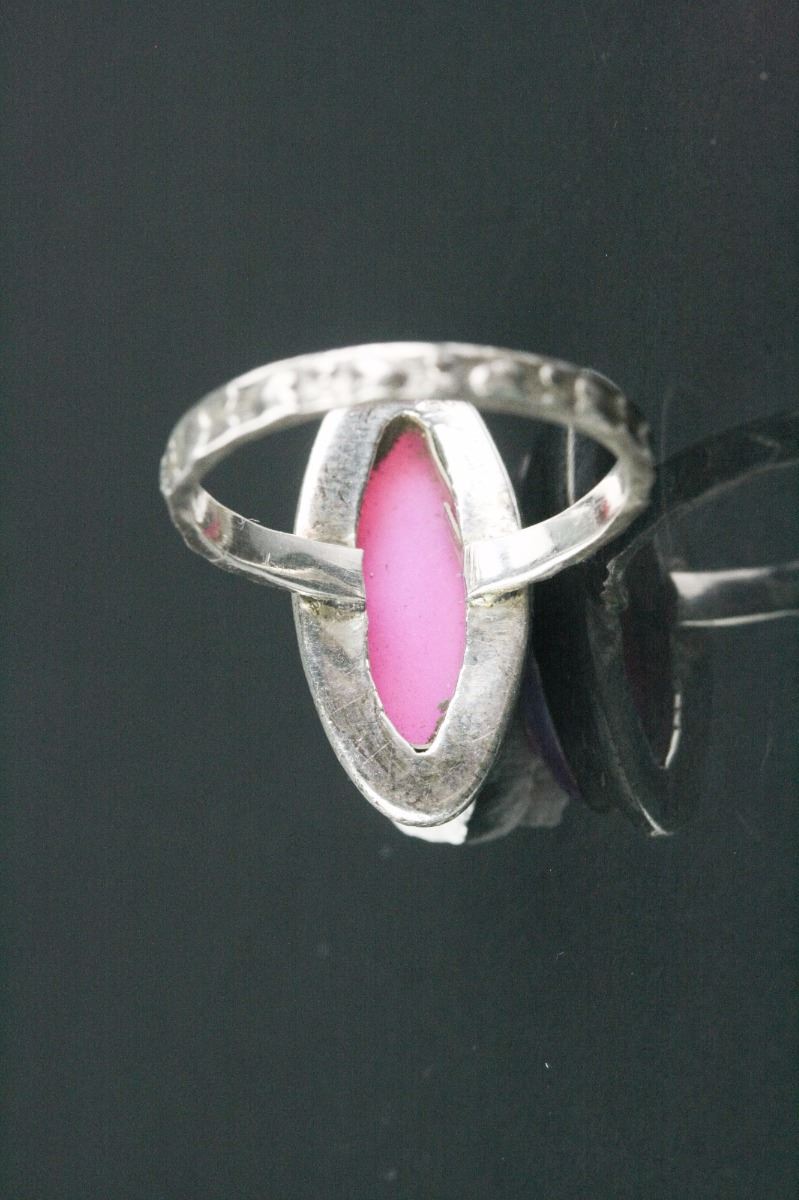 Three pieces of Chinese decorative items; comprised of one Guangxu marked ink stick, one gemstone ring and one flower-shaped spoon; W: 2 cm, L: 10 cm, Ring Size: 8, 60 grams total