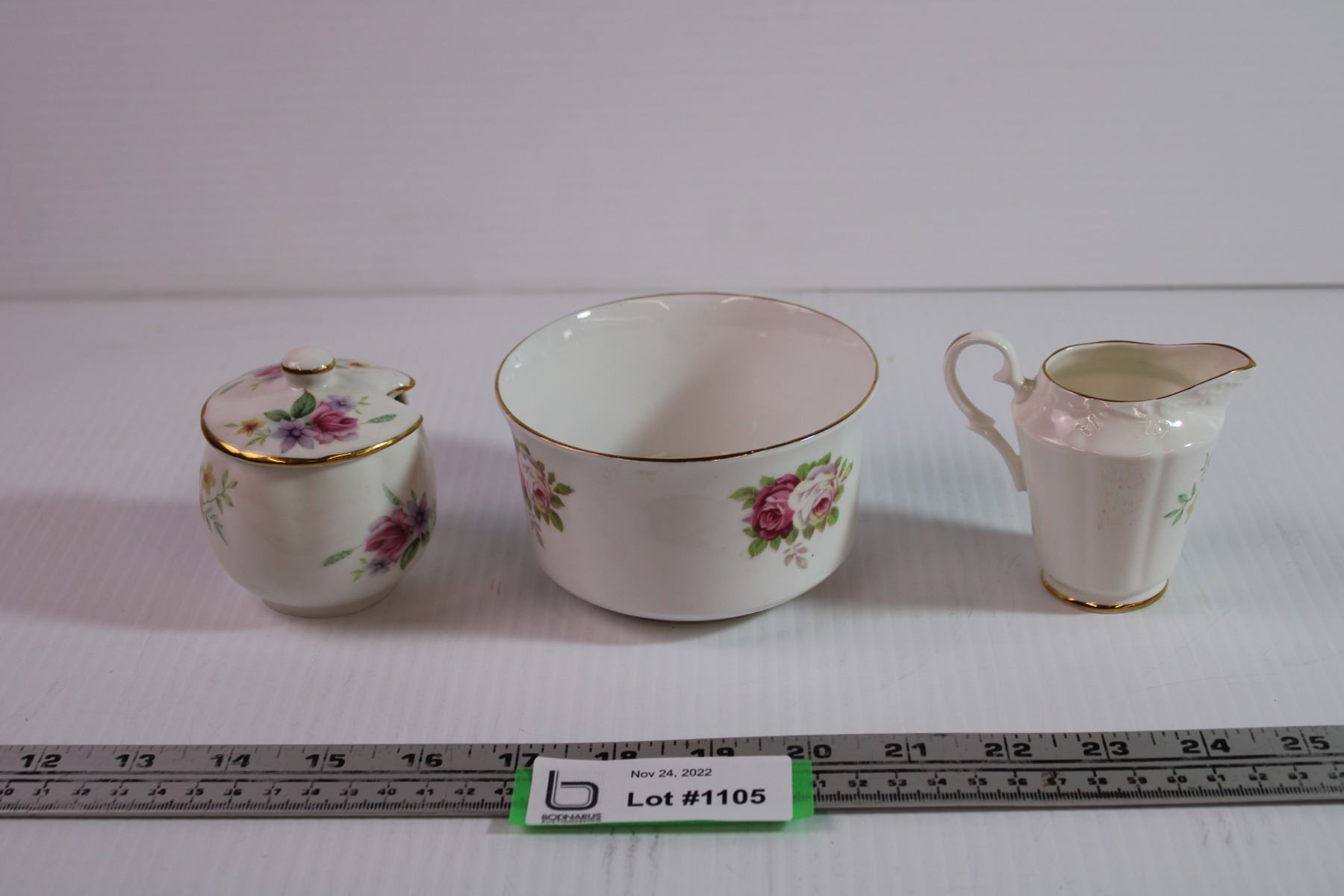 (3) Pieces of Fine Bone China (Cream & Sugar + Fruit Bowl)