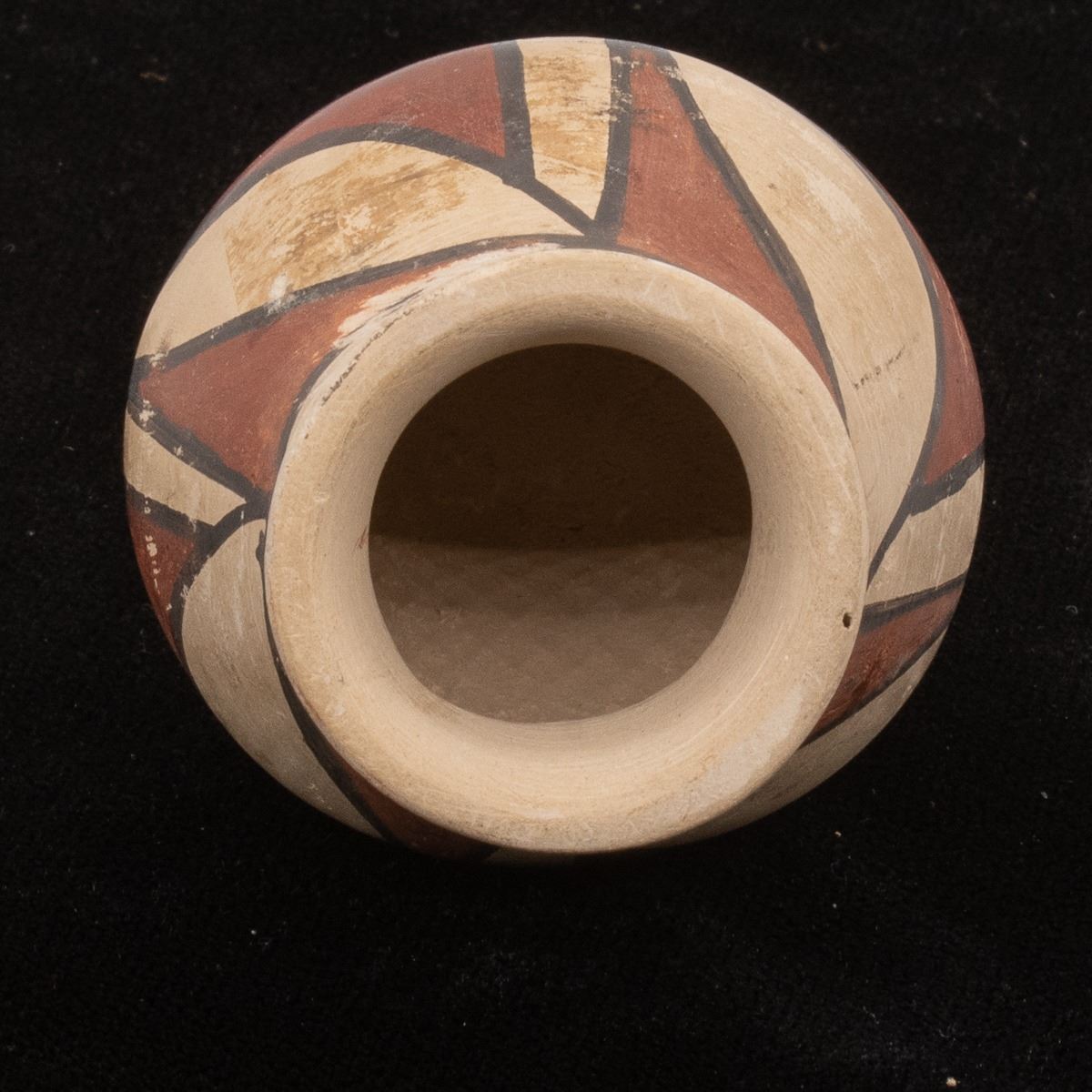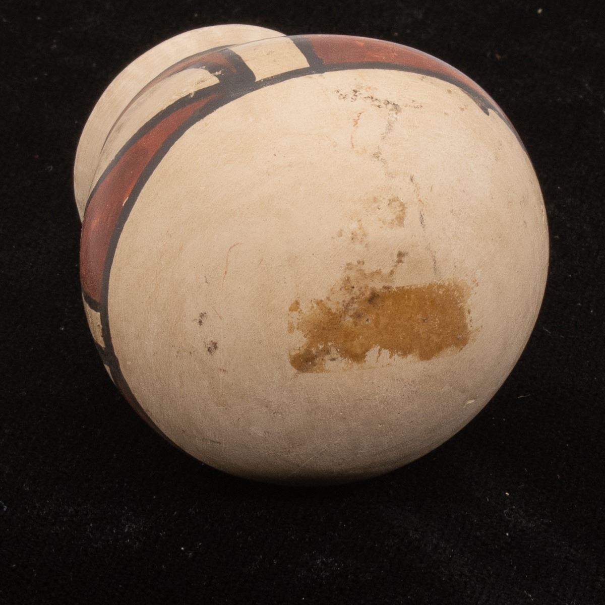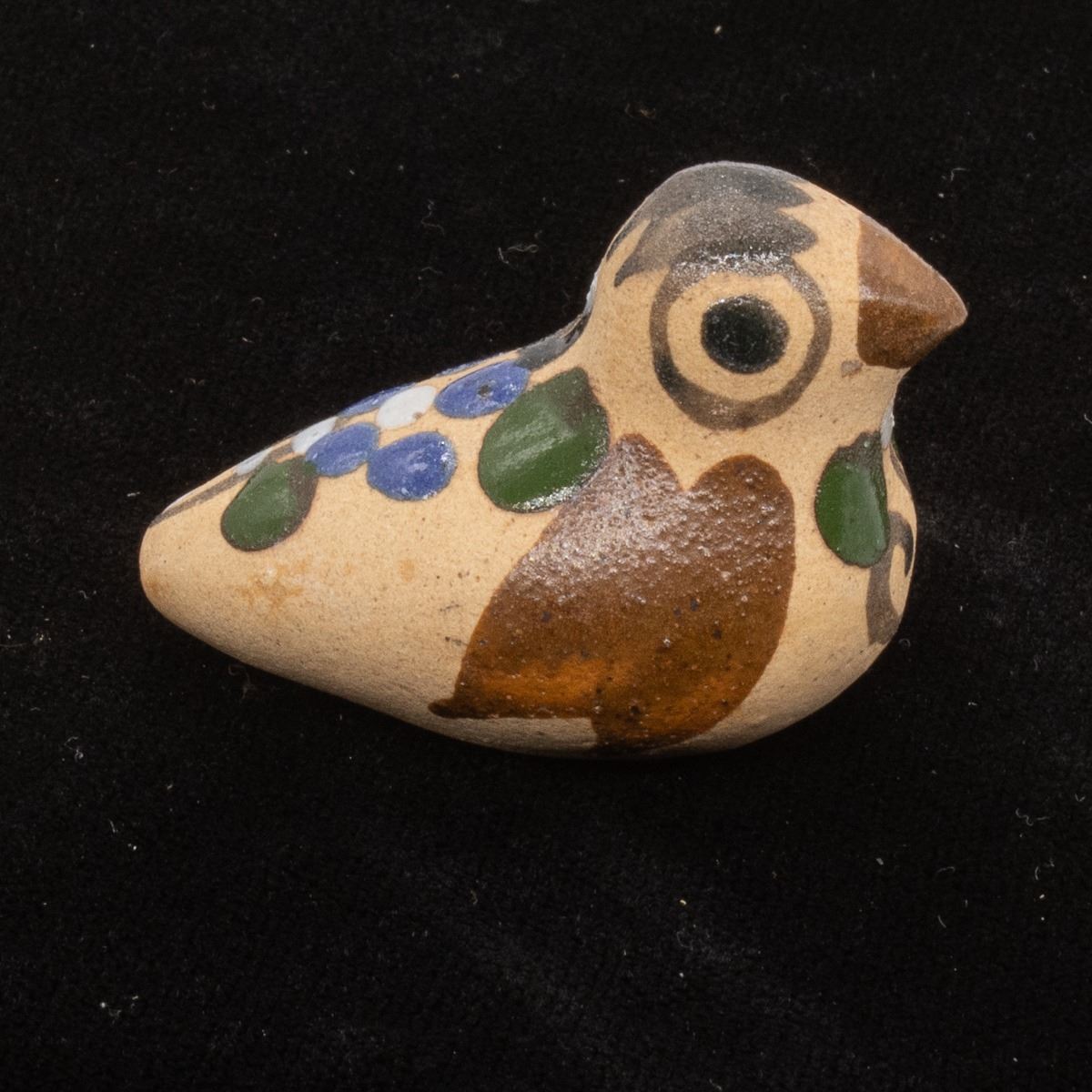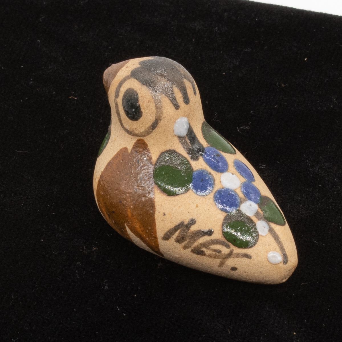3 Pieces of Mexican Pottery Miniatures, includes 1. Mata Ortiz Seed Jar by Gaby Villalba 2. Tonala Pottery Bird 3. Casas Grandes Pottery Jar (some paint loss and staining)