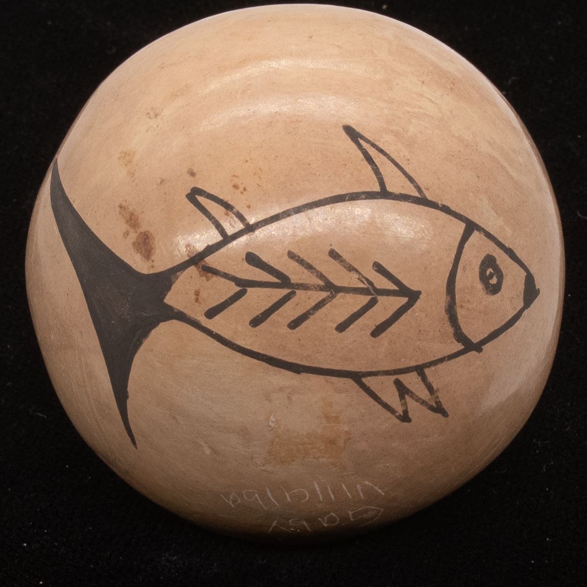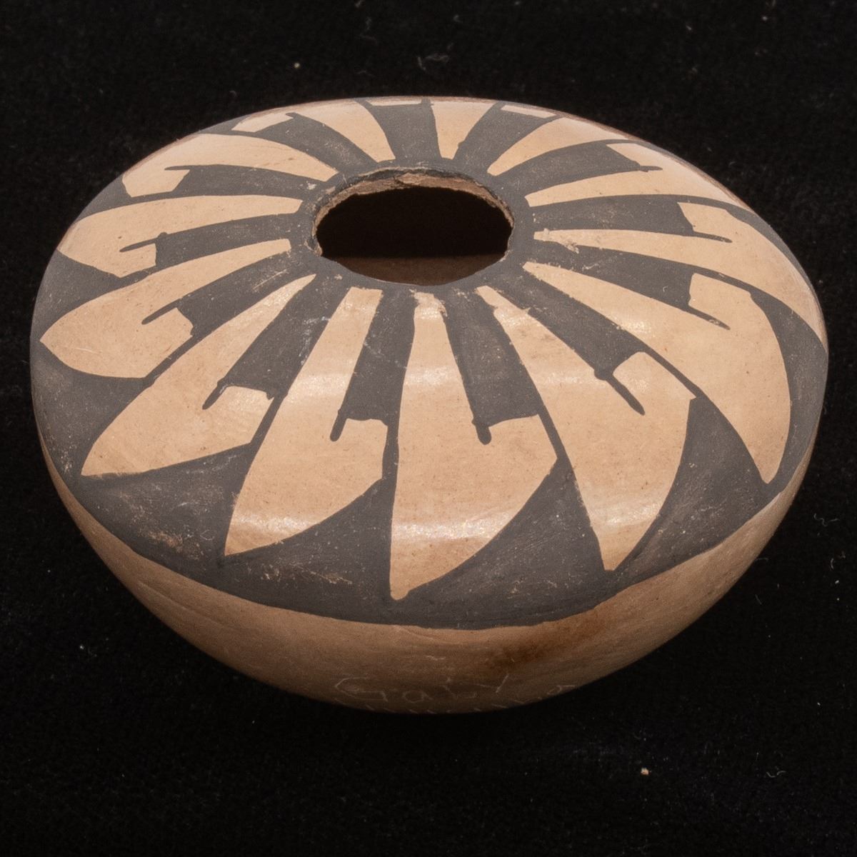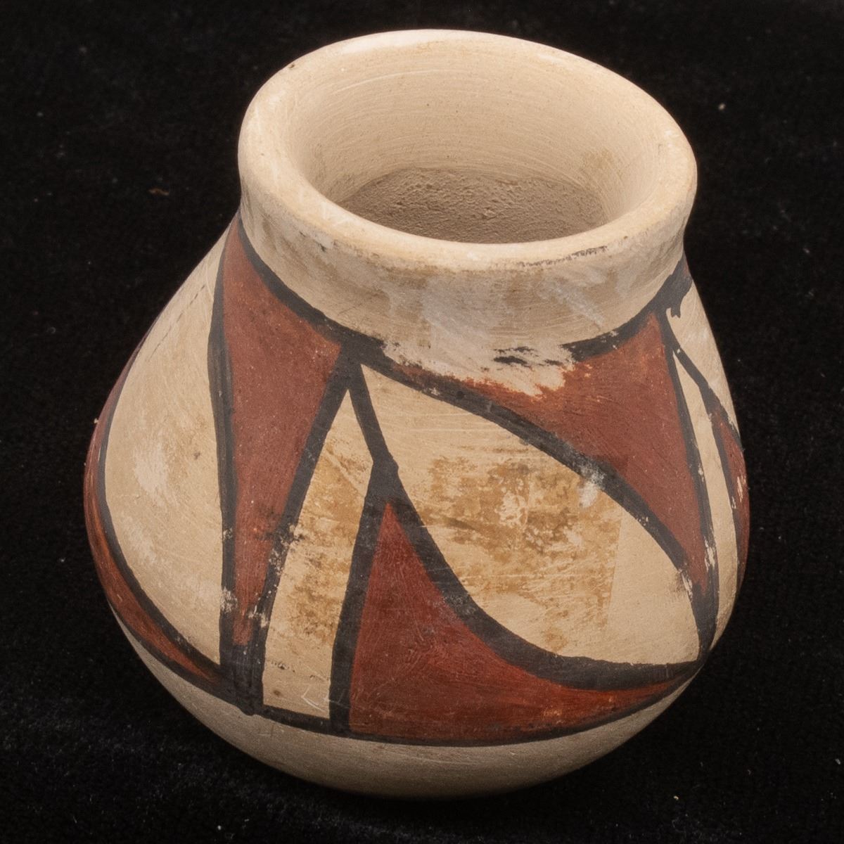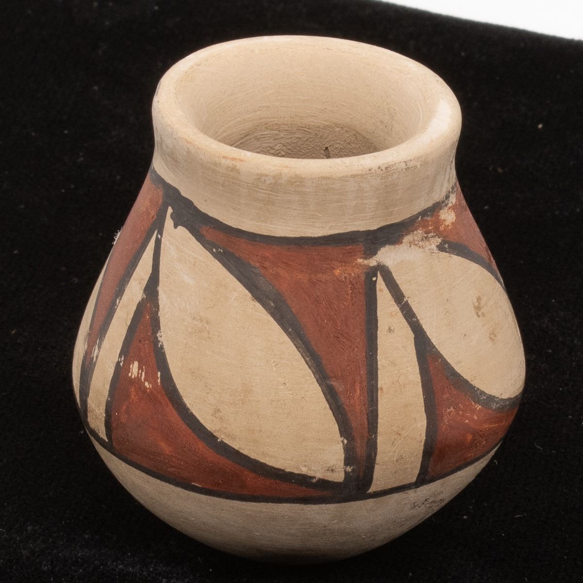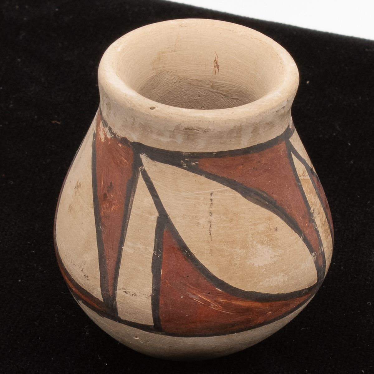 3 Pieces of Mexican Pottery Miniatures, includes 1. Mata Ortiz Seed Jar by Gaby Villalba 2. Tonala Pottery Bird 3. Casas Grandes Pottery Jar (some paint loss and staining)