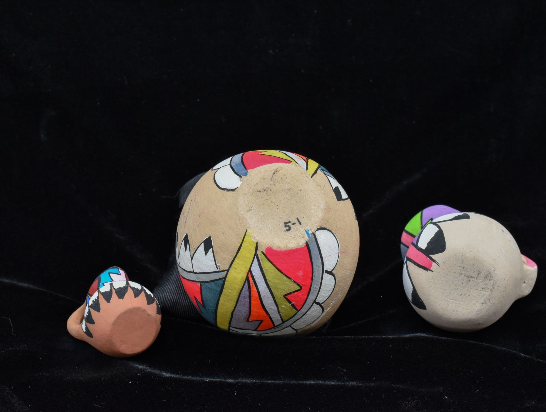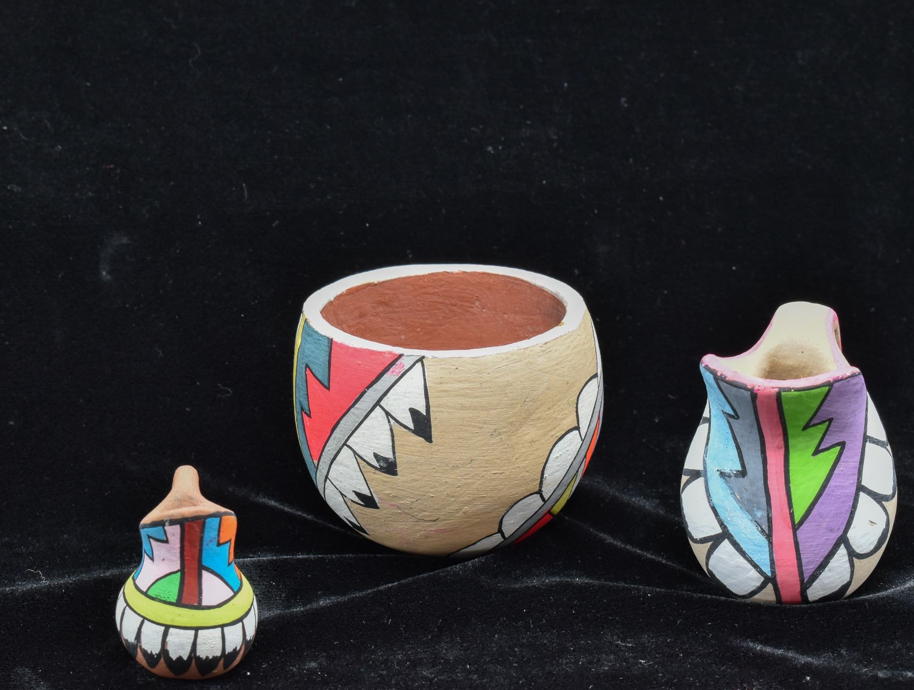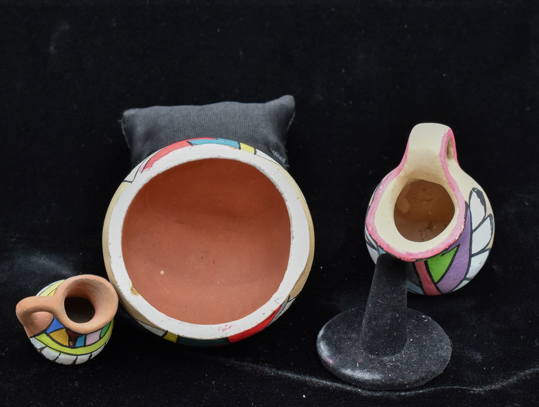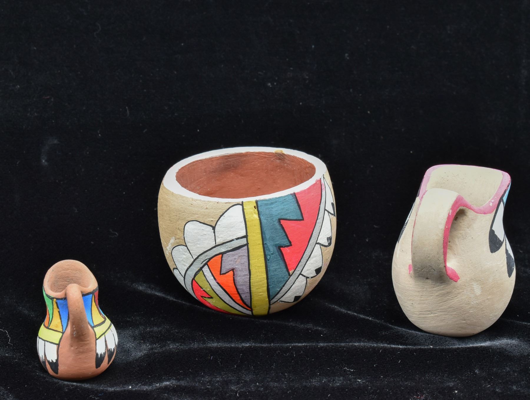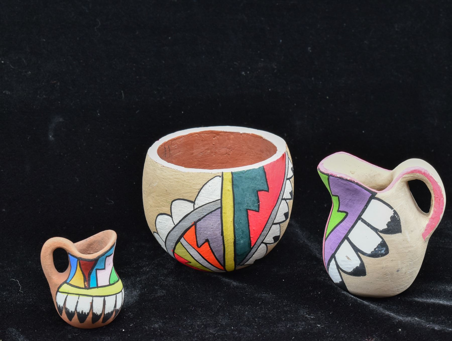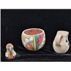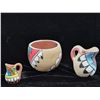 3 Pieces of Native American Jemez Poster Paint Pottery, largest measures 2.5'' x 3'', includes bowl and 2 pitchers