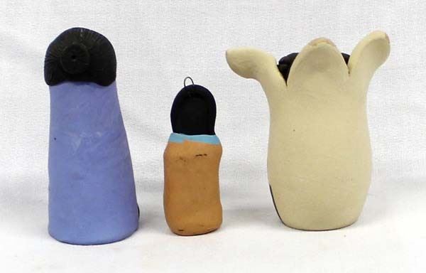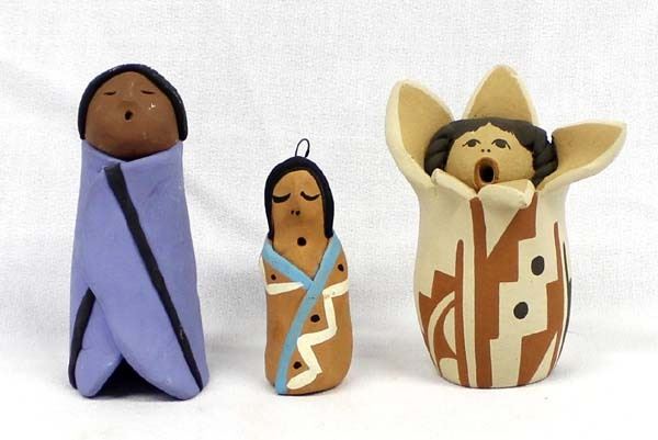 3 Pieces of Native American Pottery Storytellers, largest measures 2'' x 3'' x 3.5'' and includes 1. Doll by Rebecca dated 1994 2. Jemez Corn Maiden, signed 3. Jemez Doll, unsigned
