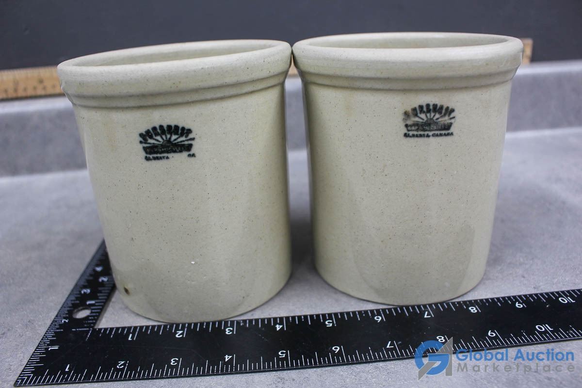Two 1/4 Gallon Crocks and #1 Bean Pot WIth Lid
