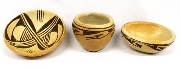 3 Pieces of Vintage Native American Hopi Pottery, largest measures 2'' x 1.5'', traditional Sikyatki designs