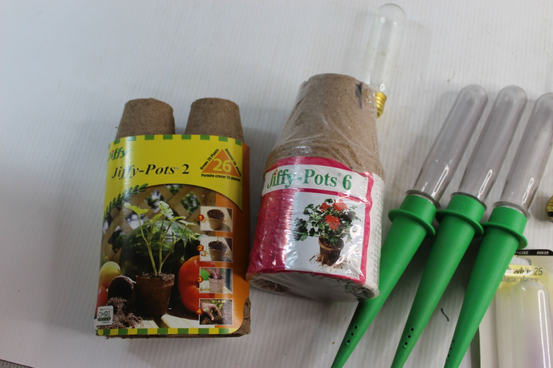 (3) Plant Spikes, Assorted Jiffy Pots and Assorted Light Bulbs