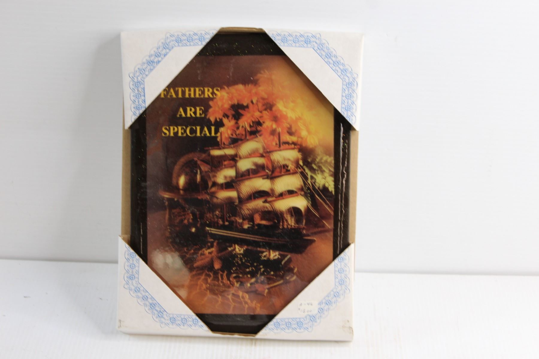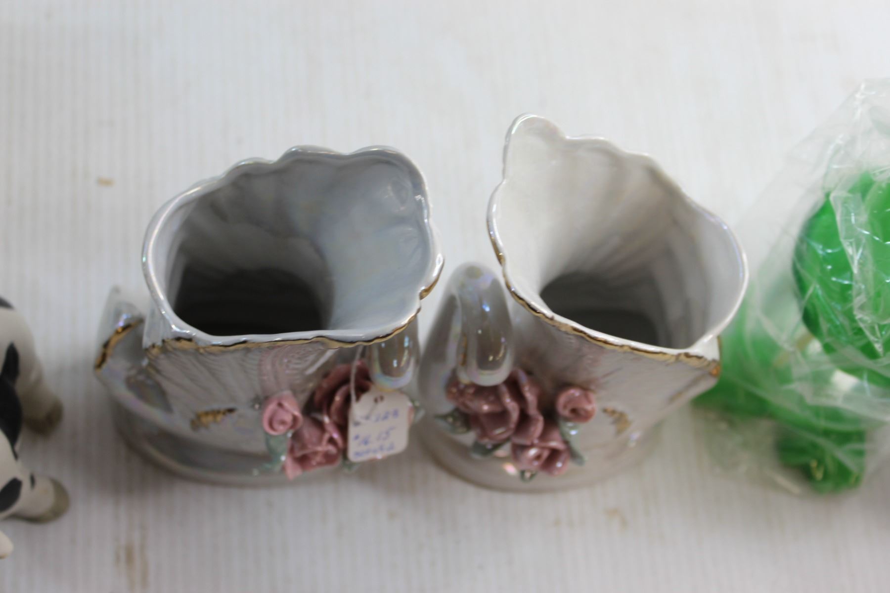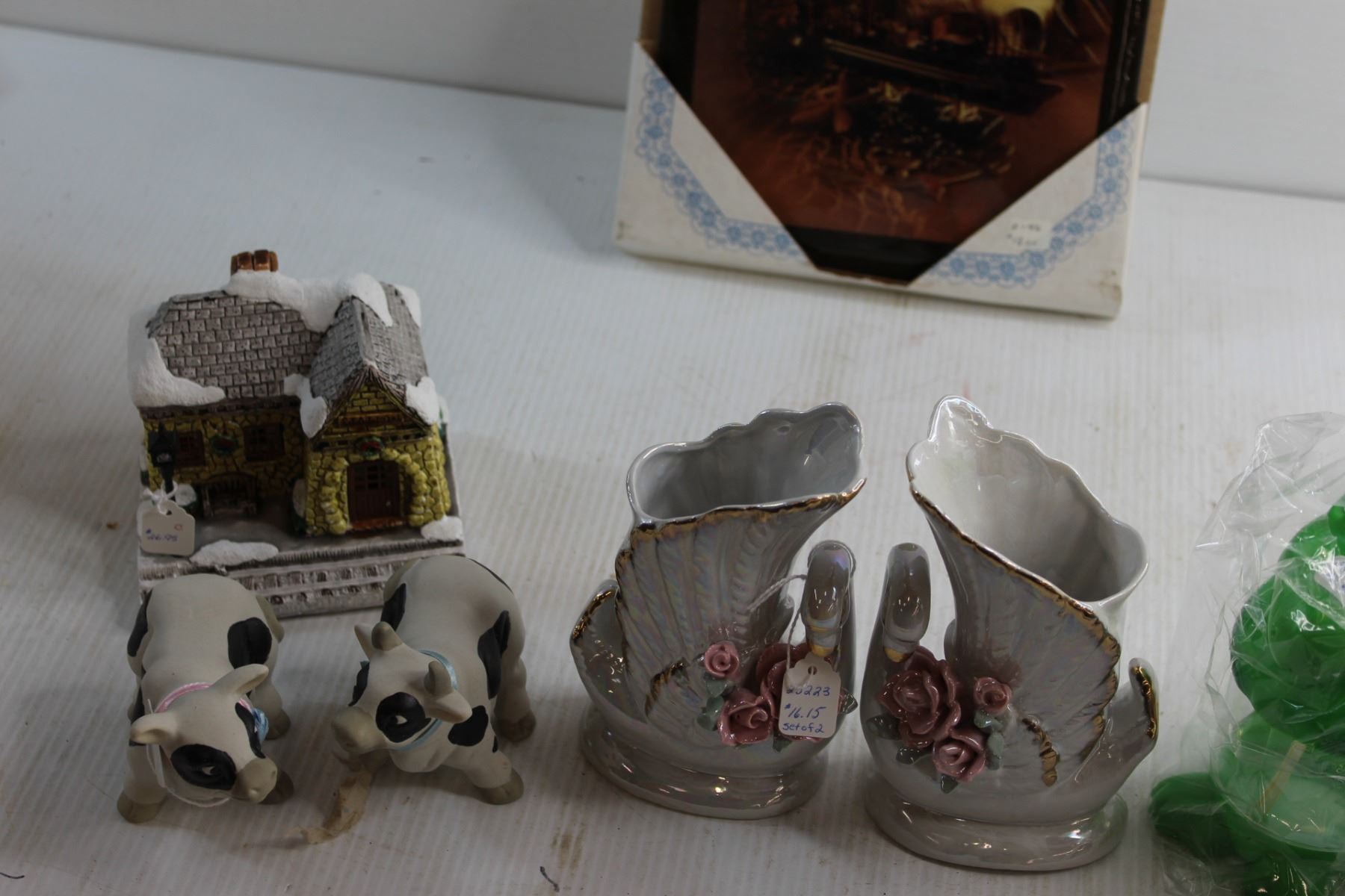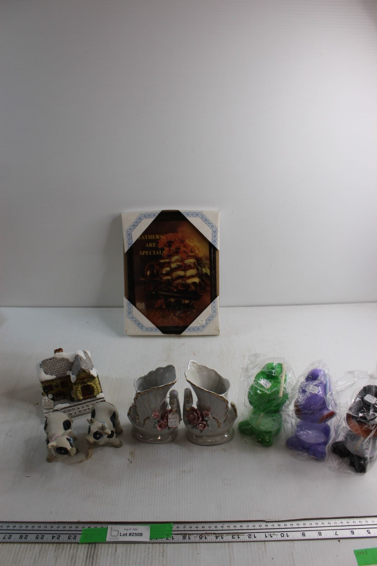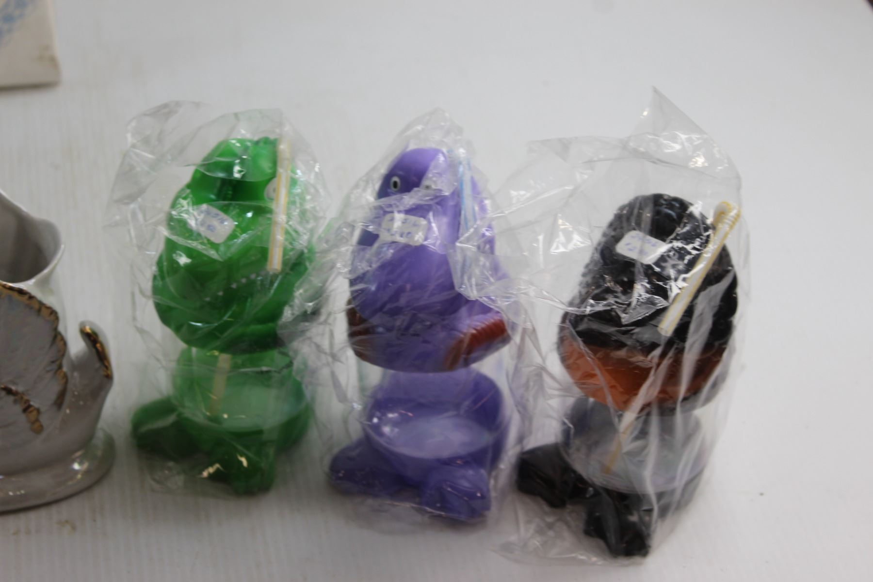 (3) Plastic Dinosaur Cups, (5) Assorted Porcelain Decorations and Photo Frame 12'' x 9''