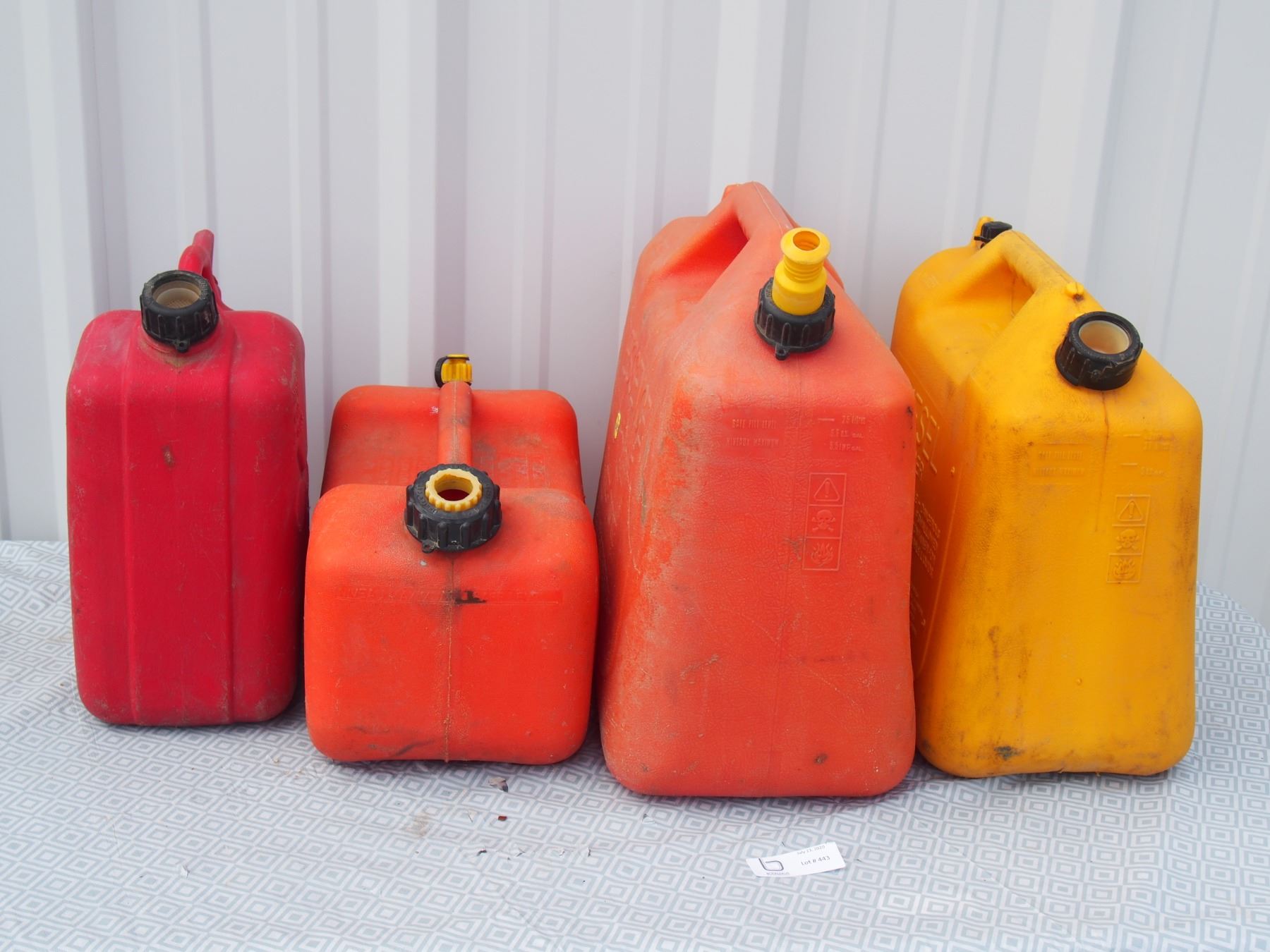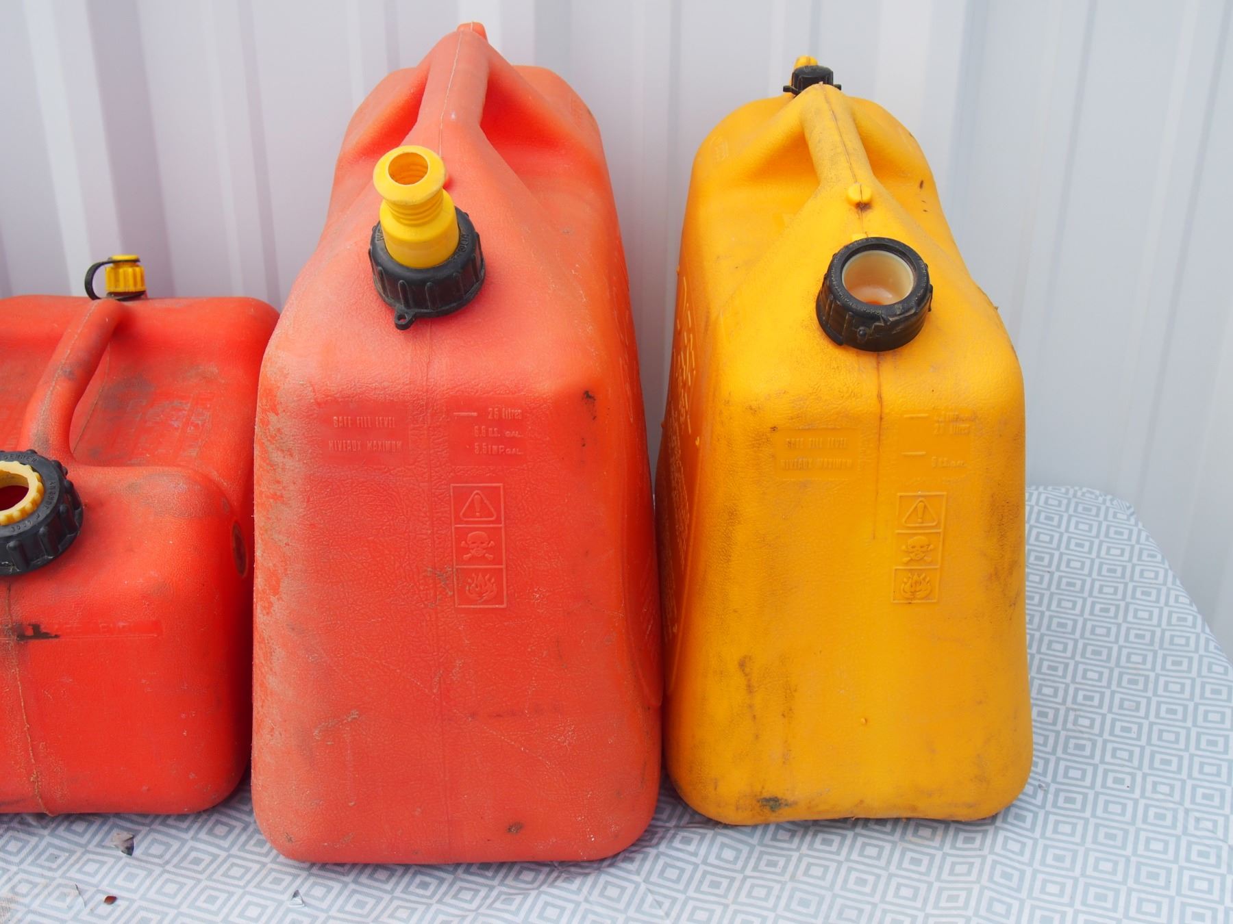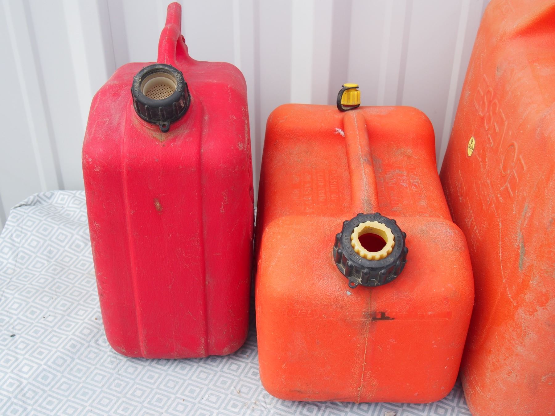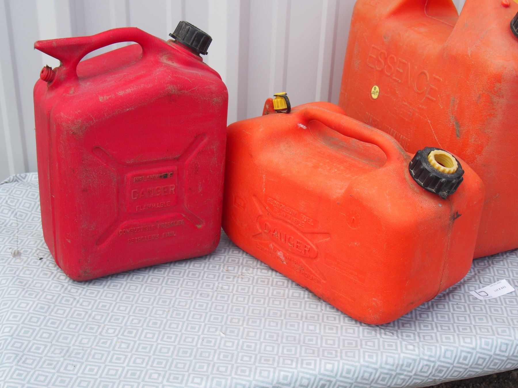 3 Plastic Gas Cans and 1 Diesel Can