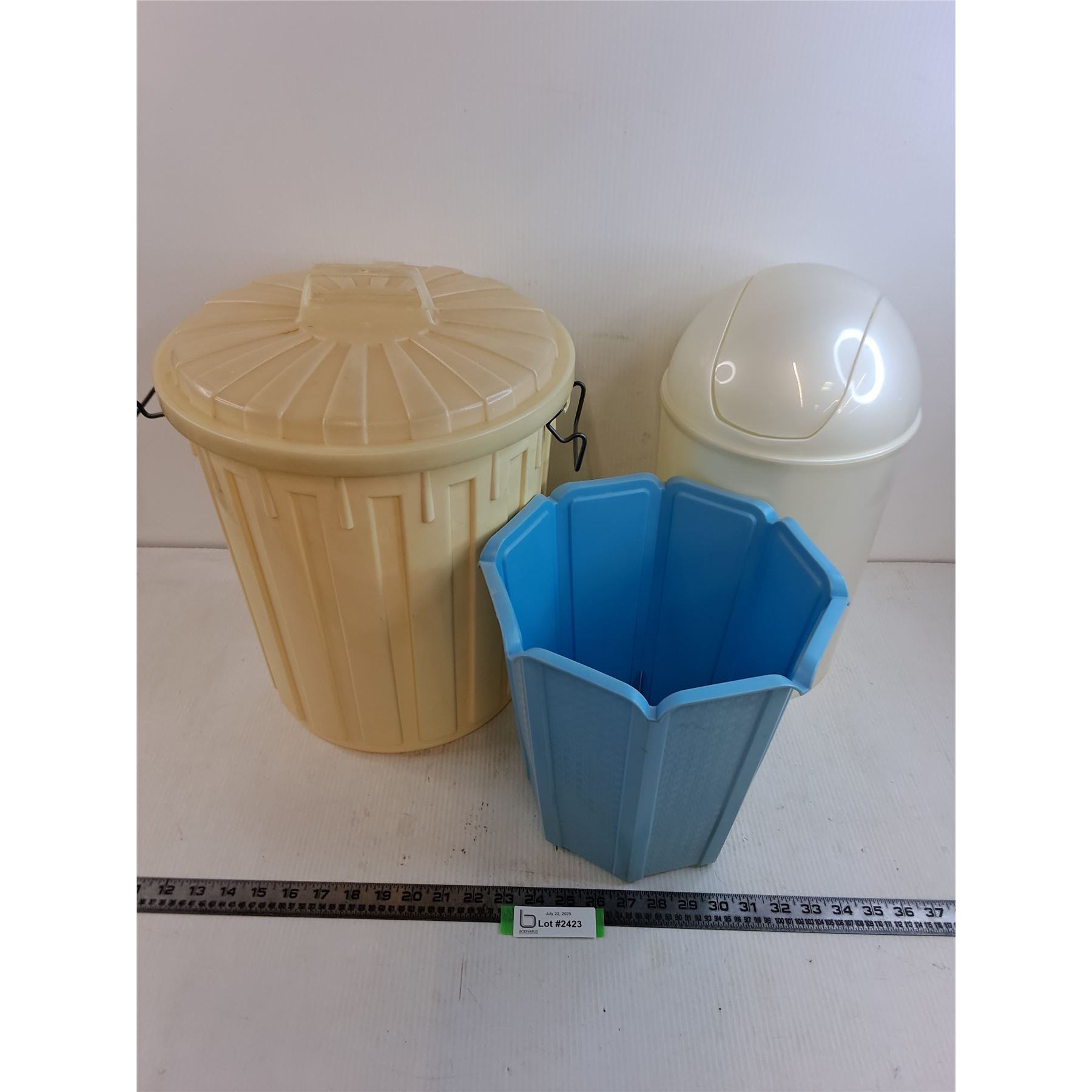 (3) Plastic Trash Cans - Largest 17  High x 13  Dia - Pickup Preferred