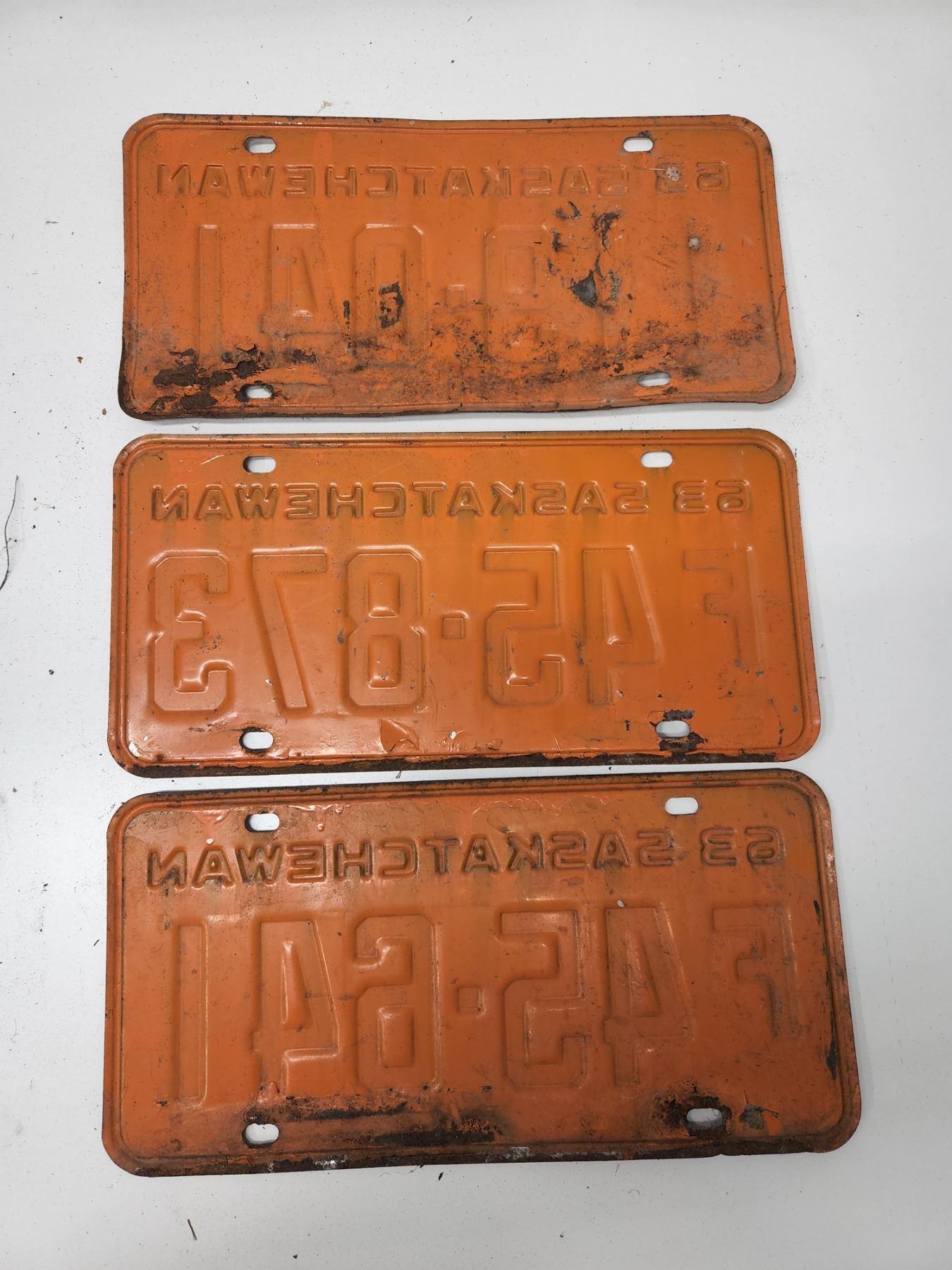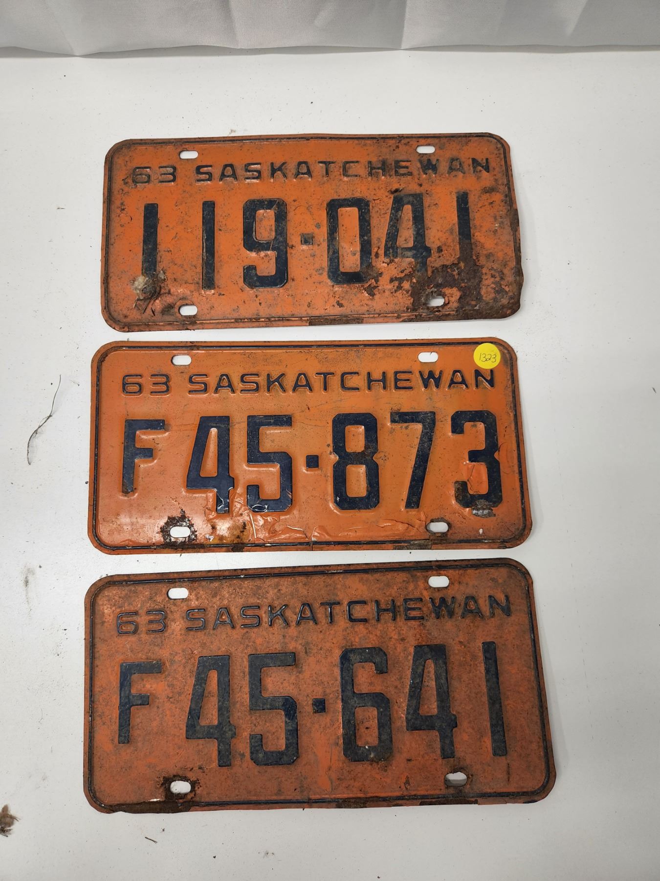 (3)Plates: 119-041 63-Sask, F45-873 63-Sask, F45-641 63-Sask
