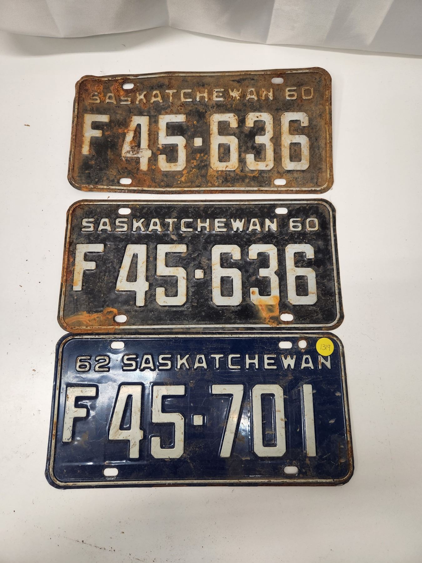 (3)Plates(2-Matching): F45-636 60-Sask x2, F45-701 62-Sask