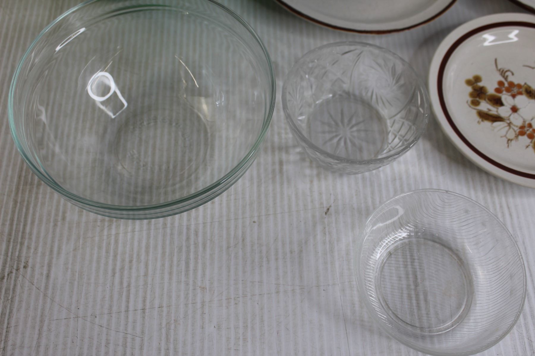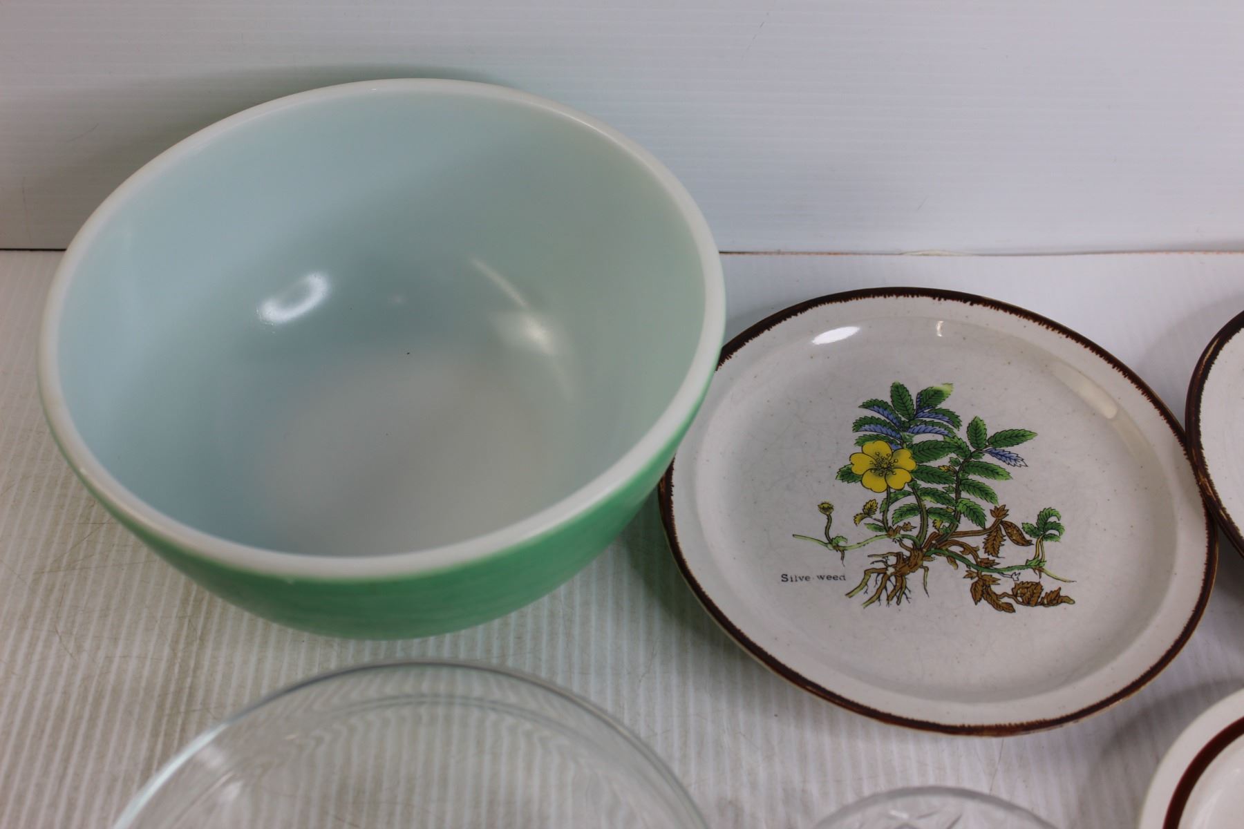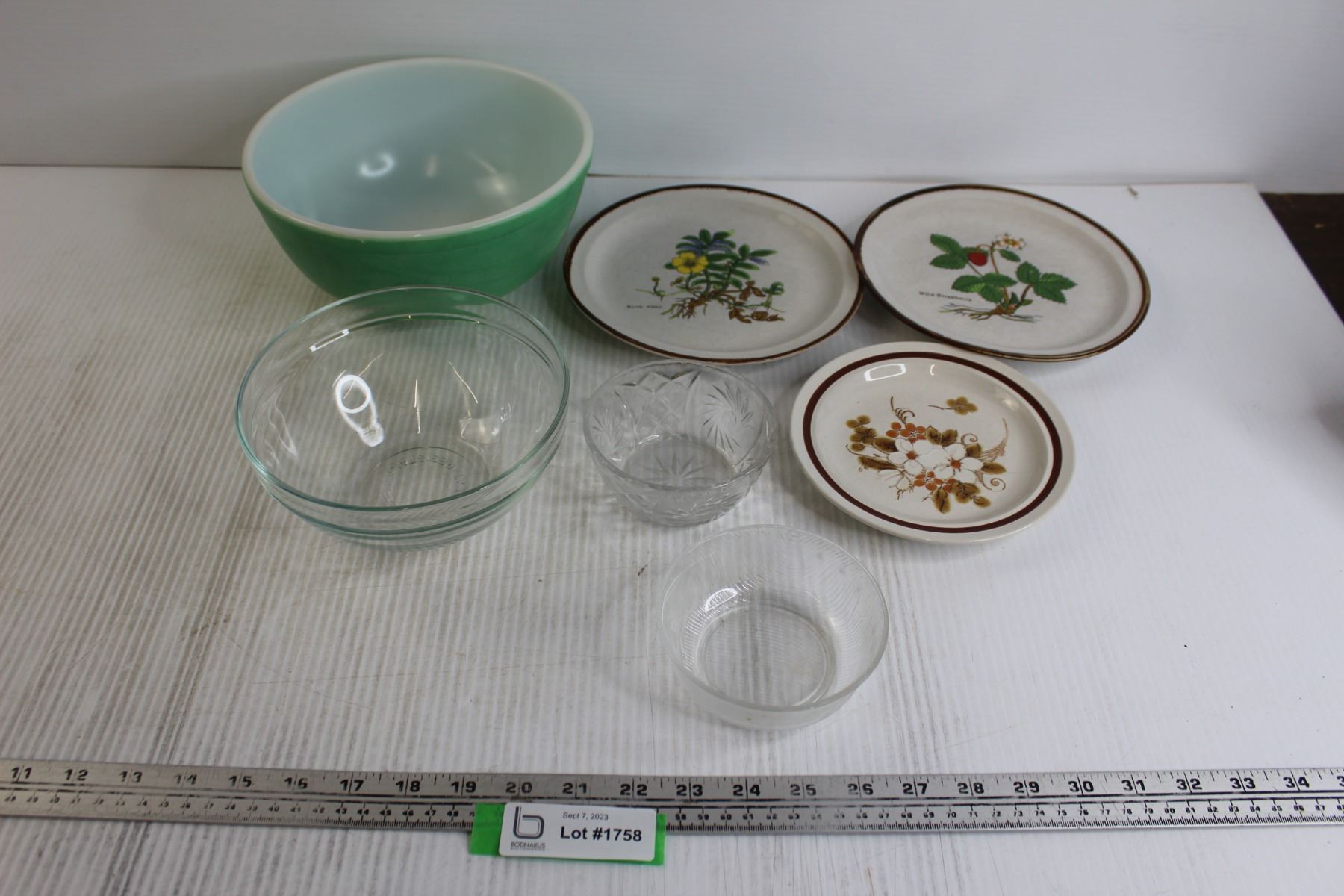 (3) Plates, (4) Bowls (Green Bowl is Pyrex)