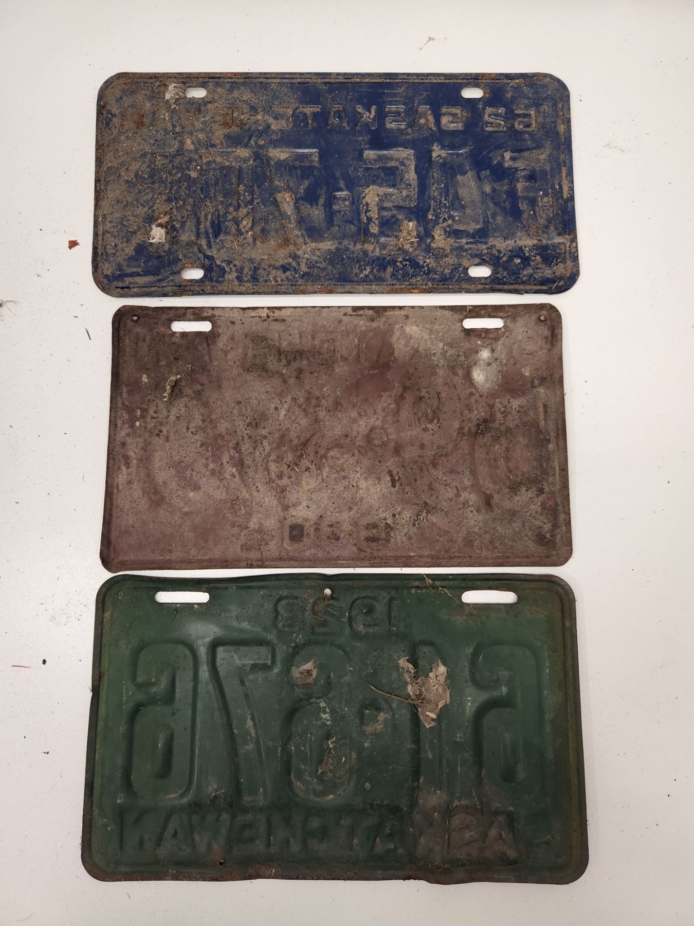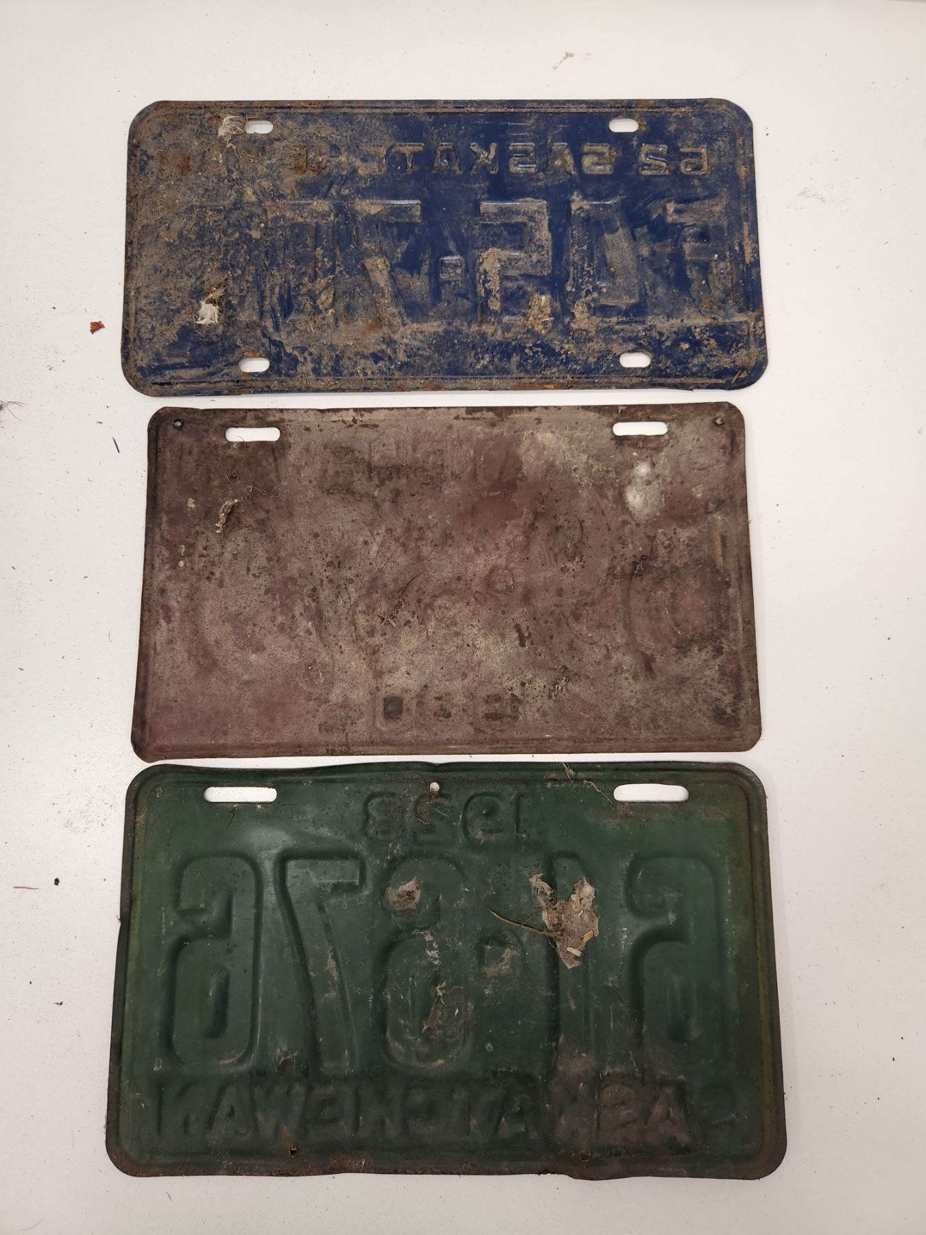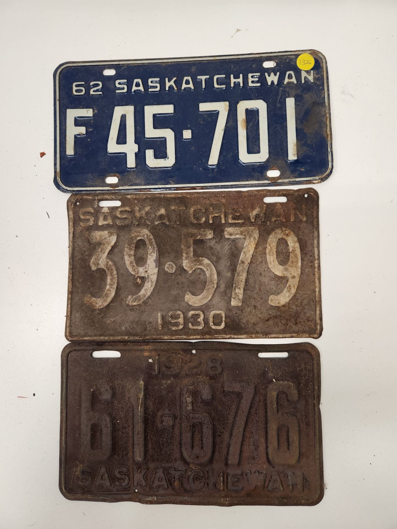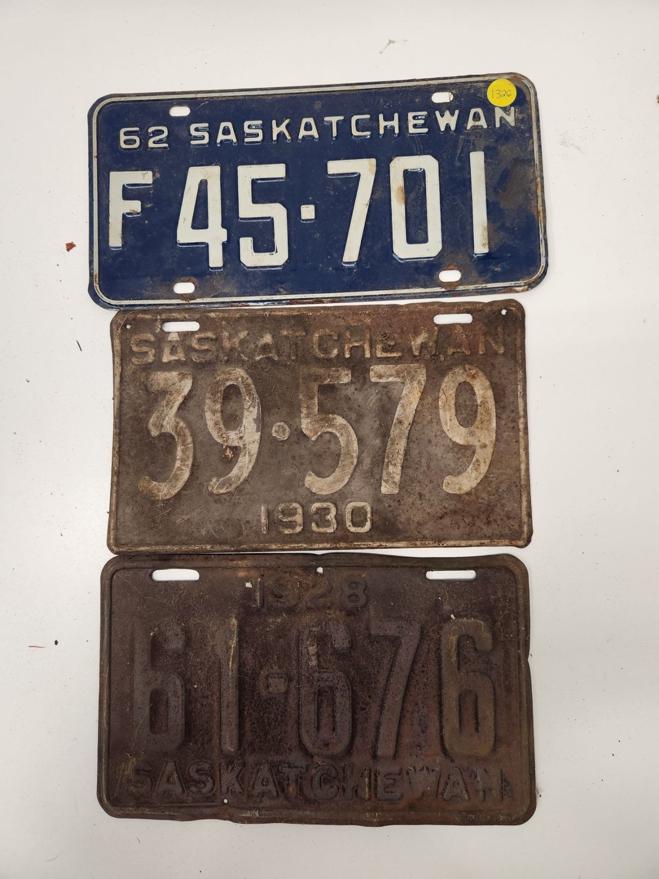 (3)Plates: F45-701 62-Sask, 39-579 1930-Sask, 61-676 1928-Sask