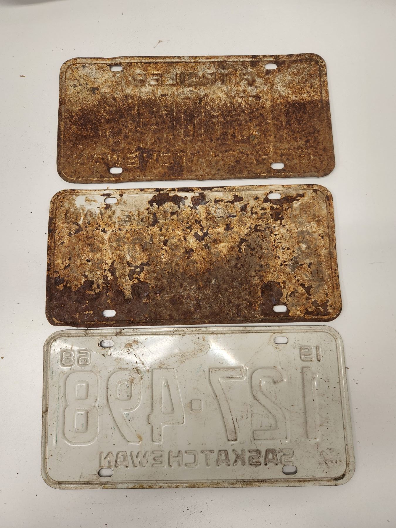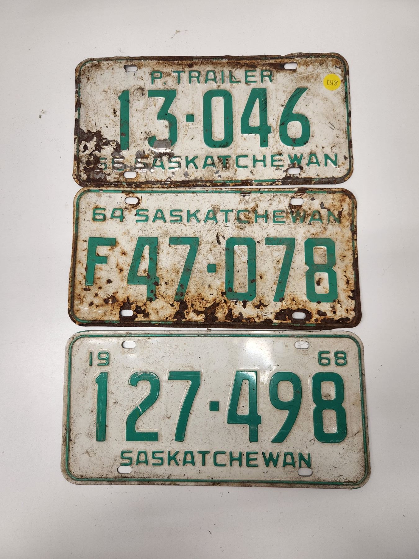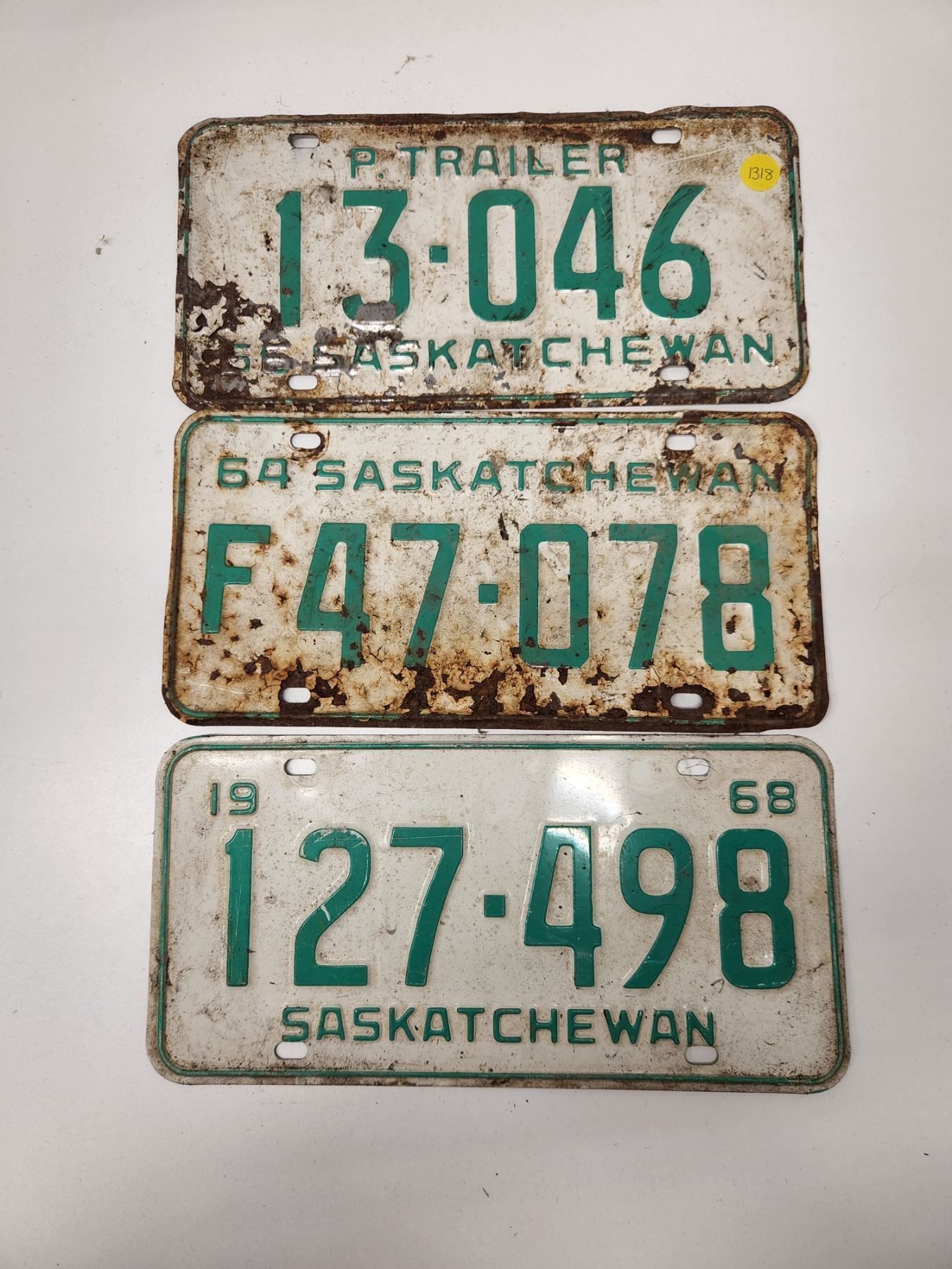 (3)Plates: P.Trailer 3-046 66-Sask, F47-078 64-Sask, 127-498 1968-Sask