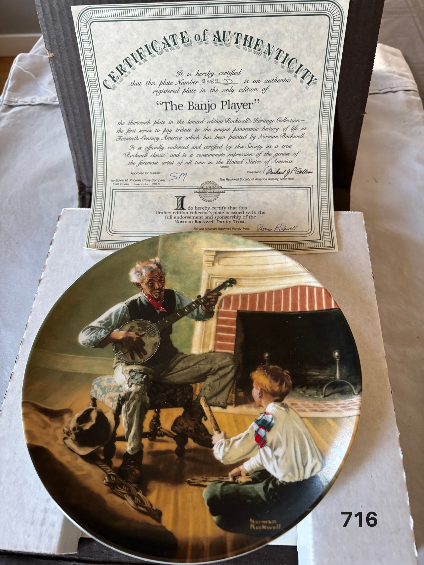 3 Plates: The Banjo Player, Norman Rockwell On Tour, The Painter