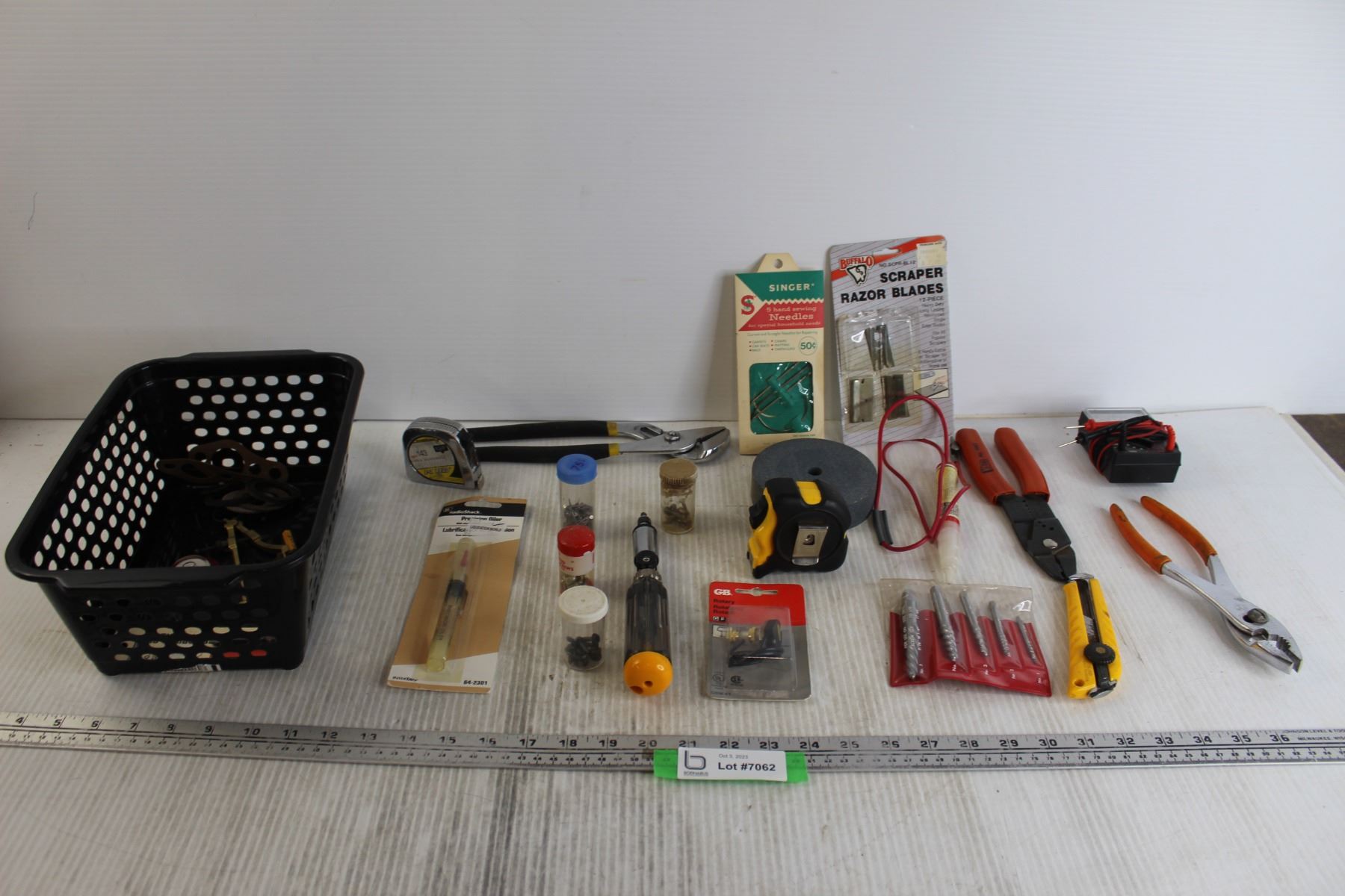 (3) Pliers, Scraper Razor Blades, Screwdriver, Misc.